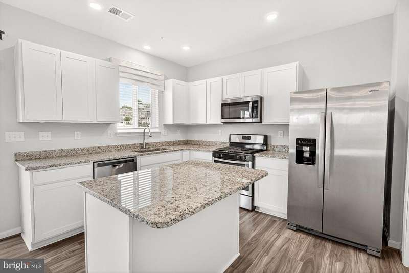 This Eastover model offers & formal model is affordable single-family living at its finest. Nestled on a desirable corner lot, the home features a welcoming full front porch and a brick patio-perfect for relaxing or entertaining. Inside, you'll find unique design finishes, including upgraded light fixtures, stylish accent walls, and modern details you won't see anywhere else. With 3 bedrooms and 2.5 baths, this thoughtfully designed home is built for convenience. The owner's suite boasts a spacious bathroom and walk-in closet, while the laundry is located on the bedroom level for easy access. The open-concept kitchen is the heart of the home, showcasing a granite island with built-in sink, stainless steel appliances, granite countertops, recessed lighting, and luxury vinyl plank flooring that flows into the family and dining areas. Enjoy peace of mind with smart-home features like hands-free communication, remote keyless entry, and a SkyBell video doorbell. Conveniently located just 5 minutes from Rt 70, shopping, and restaurants, this home perfectly blends style, comfort, and location.