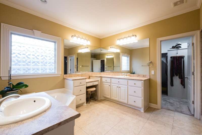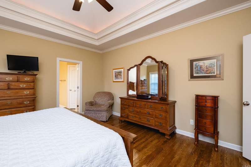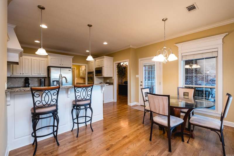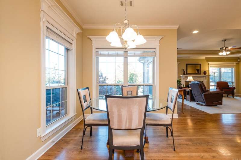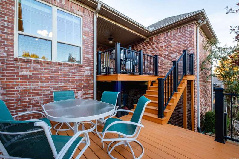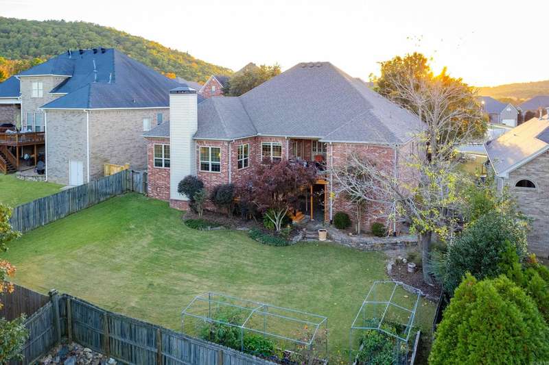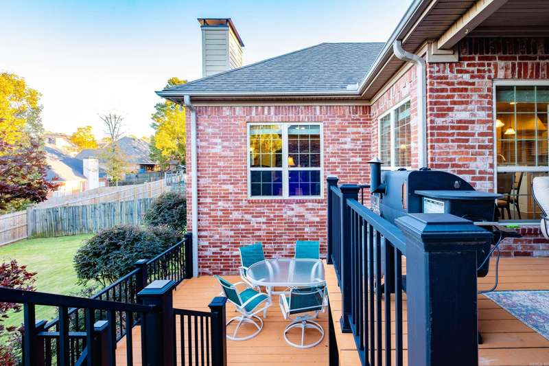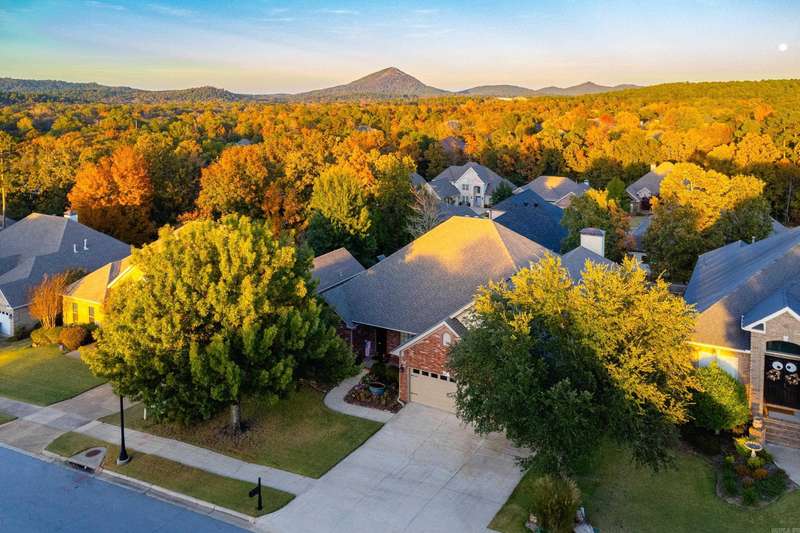 Stunning pinnacle mountain views. Beautifully maintained all brick home with an awesome split floor plan and wood floors throughout. Formal living and dining rooms plus large family room with a tray ceiling and cozy gas log fireplace overlooking the deck and backyard. The kitchen offers informal dining, breakfast bar, newer gas cooktop and microwave, and a large butler’s pantry all with custom cabinetry. The spacious primary suite features a large spa bath and huge walk-in closet with extra storage. Three additional bedrooms include one that could serve perfectly as an office or guest room. Two nice guest bedrooms share a full hall bath, with another full guest bath for convenience. Enjoy plantation shutters, a large laundry room, and multiple outdoor living spaces with multi-level decks, one covered, overlooking the fully fenced, landscaped backyard with raised beds. Expanded basement storage and workshop area under the house, plus a three car garage with underground storm shelter, storage, and workbenches. Recent updates include a newer roof (2017) and 10 new windows (2025). Charming front porch with updated water feature completes this move-in ready home. Come see!