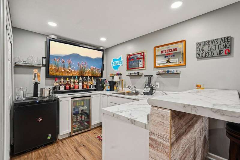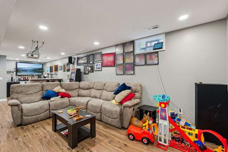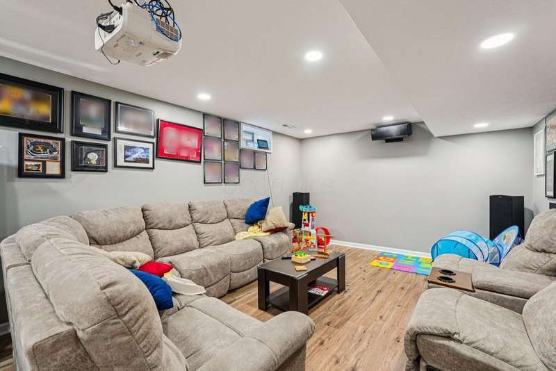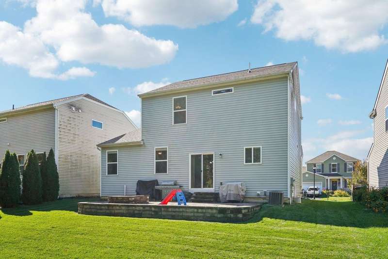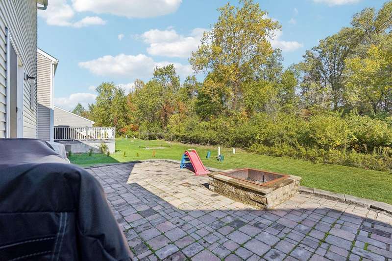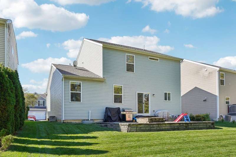 Welcome Home! This one owner home has 2,552 finished sq ft which includes the fully finished lower level w/ 4th bdrm, living room, kitchenette & half bath perfect for in-laws or teen suite! Main floor kitchen w/pantry & center island plus a designated eating area between kitchen & large family rm. Also a main floor formal dining rm/office/play rm etc. & half bath. Upstairs you will find 3 more bdrms & 2 full baths plus the laundry rm (washer & dryer remain)! In this desired back yard there is a paver patio that has a built-in fire pit & there aren't any homes looking back at you for more privacy! Located in a quiet community w/its own private park & pond! Just minutes to restaurants, shopping, hospital and I-270. Lower level 'home theater equipment' does not convey.