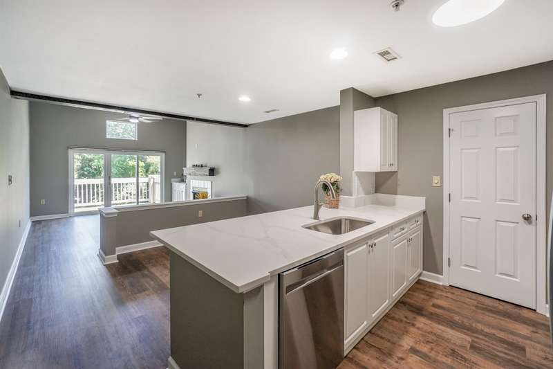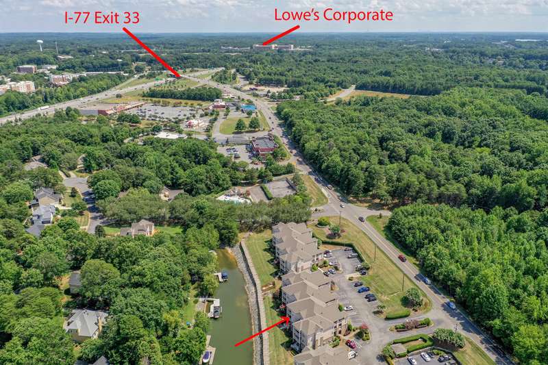 Enjoy beautiful, year-round water views from this top-floor home featuring soaring third-floor ceilings with custom barnwood beams and a matching mantle that add rustic elegance to the living area. This recently updated home includes luxury vinyl plank flooring throughout, fresh paint, and brand new countertops in both the kitchen and one bathroom. The kitchen comes equipped with all new appliances. The washer and dryer are also included, making this home move-in ready. Located in a desirable waterfront community, you can enjoy access to Lake Norman, along with fantastic amenities including a pool and tennis courts. Already own a boat? Stutts Marina and a boat club are around 5 miles away for convenient lake access. Perfectly situated just off I-77 at Exit 33, this home is close to Lowe's Corporate Headquarters, Langtree shopping, and an array of great restaurants. Don't miss this opportunity to live the lake lifestyle with comfort, convenience, and captivating views!