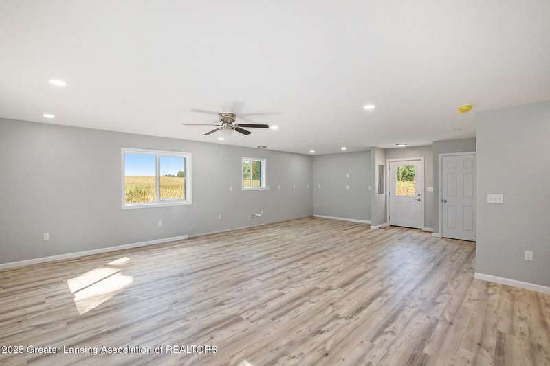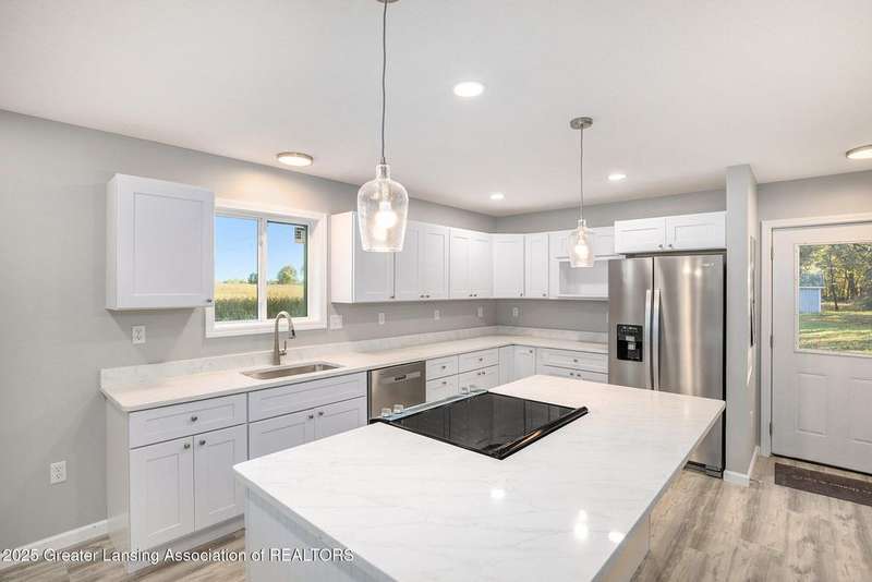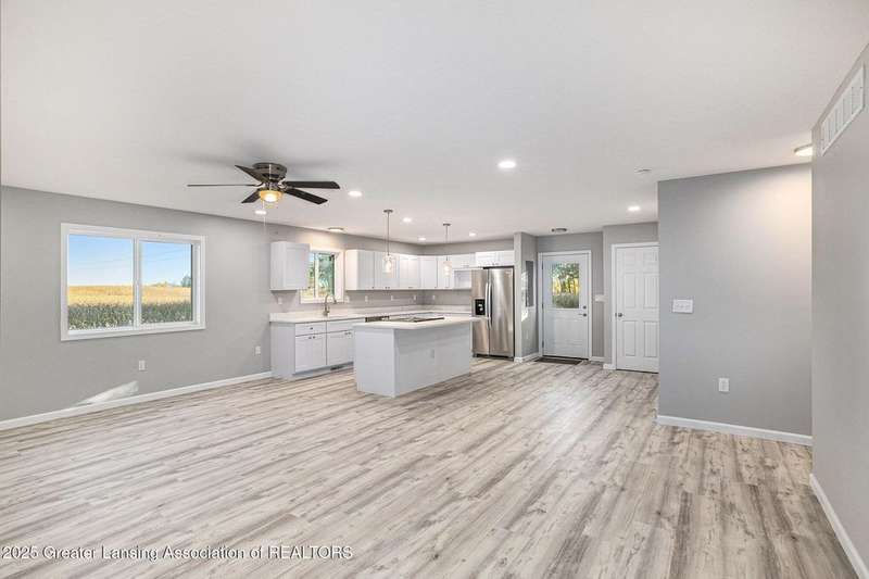 Whether you're just starting out or looking to downsize, this brand-new ranch in Stockbridge is the perfect fit. Set on a half-acre lot, the home features three bedrooms, two full baths, and an open-concept kitchen, dining, and living area that creates a bright and spacious feel. The kitchen will be finished with sleek quartz countertops, new stainless steel appliances, and attractive laminate flooring that extends through the main living space. Step out back to enjoy peaceful rural views from the deck, or take advantage of the 24x24 pole barn with concrete flooring and its own 100-amp service?ideal for storage, hobbies, or a workshop. Just minutes from town yet surrounded by country charm, this property is a wonderful place to call home.