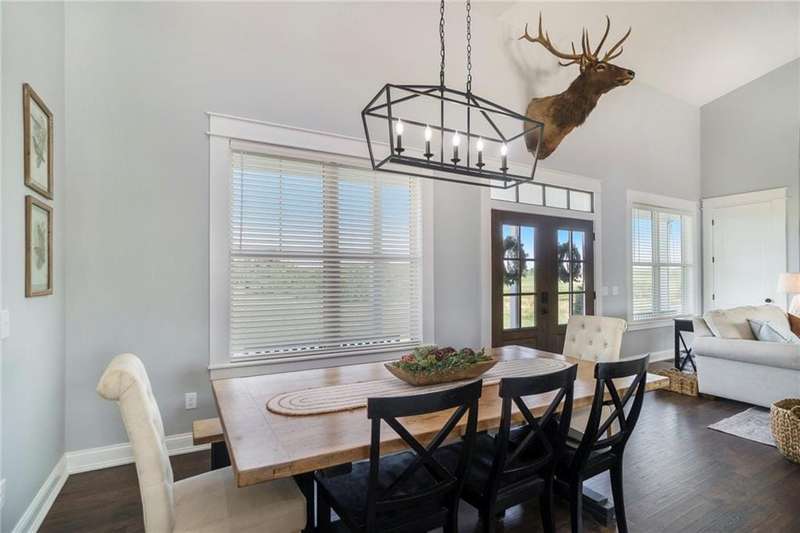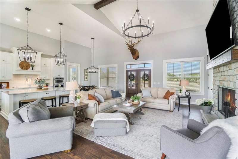 Welcome to your dream retreat! Nestled on just over 10 pristine acres with a private pond, this stunning custom-built home offers the perfect blend of luxury, comfort, and natural beauty! From the moment you pull into the drive, the charming front porch and serene setting set the tone for what awaits inside. Step through the front door into an open floor plan filled with soaring ceilings, walls of windows, and abundant natural light. The great room is the heart of the home, featuring a dramatic floor-to-ceiling stone fireplace flanked by built-ins, ideal for cozy evenings or large gatherings. The chefs kitchen is a showstopper, designed with high-end finishes including a 9 island, quartz countertops and backsplash, farmhouse sink, pot filler, stainless steel appliances, coffee bar, double oven, and walk-in pantry. The kitchen flows seamlessly into the dining area, making entertaining effortless while overlooking breathtaking views of the pond and treed landscape. The main-level primary suite is a true retreat, offering a spa-like bathroom with soaking tub, walk-in shower, dual vanities, and an expansive walk-in closet. Also on the main floor are two additional bedrooms with a Jack-and-Jill bath, plus a convenient mudroom and laundry room located just off the suite. Upstairs, youll find a versatile bonus room, perfect for a home office, playroom, or creative space. The recently finished walkout lower level provides even more living space, complete with a large family room, kitchenette, full bath, fourth bedroom, and generous storage. Step outside to enjoy multiple outdoor living spaces, including an oversized patio with a hot tub that stays, perfect for relaxing, dining, or simply soaking in the sunsets over your private pond. Additional highlights include an oversized three-car garage with plenty of extra parking, and a location that offers peace and privacy while still being close to top-rated schools and conveniences. Schedule an apt for your dream home today!