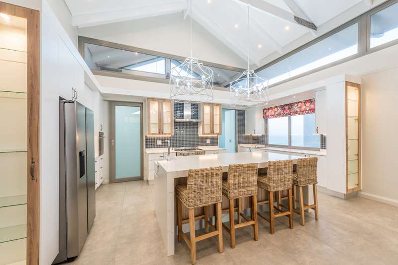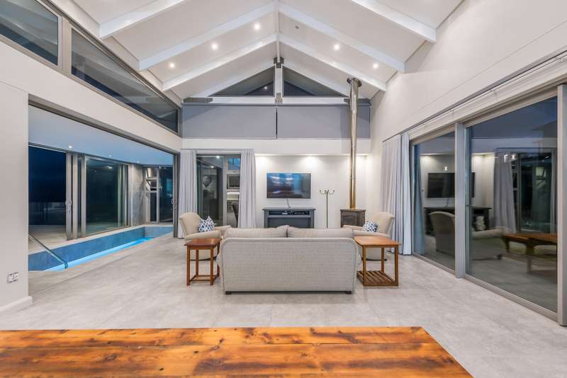 Designer Family Retreat with Year-Round Entertaining Located on a quiet, tree-lined road in Mossel Bay’s most desirable enclave, this spacious double-level home offers refined comfort, architectural elegance, and effortless entertaining—crafted for discerning families and lifestyle investors. Sophisticated Layout and Flow Entry level includes: *Two spacious en-suite bedrooms *Formal living room with double-volume ceilings *Informal lounge with built-in braai *Gourmet kitchen with direct garage access Lower level features: *Three additional en-suite bedrooms with built-in cupboards *Three walk-in closets *Linen cupboard and second lounge *All five bedrooms include en-suite bathrooms and ample storage Gourmet Kitchen and Entertaining Spaces *Premium Smeg and Samsung appliances *Central island designed for stylish hosting *Walk-in pantry and scullery for seamless functionality Warmth, Light and Privacy *Double-glazed windows throughout for insulation and acoustic comfort *Wood-burning fireplace for cozy winter evenings *Abundant natural light enhances every living space Indoor/Outdoor Poolside Luxury *Heated chlorine pool enclosed by tinted stacking glass doors *Usable year-round, regardless of weather *Expansive patio ideal for summer gatherings *Heat pumps discreetly housed beneath the home for easy maintenance Eco-Conscious and Tech-Ready *Landscaped, low-maintenance garden *Two 20,000-liter rainwater tanks with advanced filtration systems *Full DSTV and Wi-Fi connectivity *Inverter system installed and solar-ready to eliminate load shedding concerns **All photography is exclusively licensed to Jawitz Properties. Usage by other parties is prohibited without prior agreement with Inzpire Photography..** Contact us for an exclusive viewing!