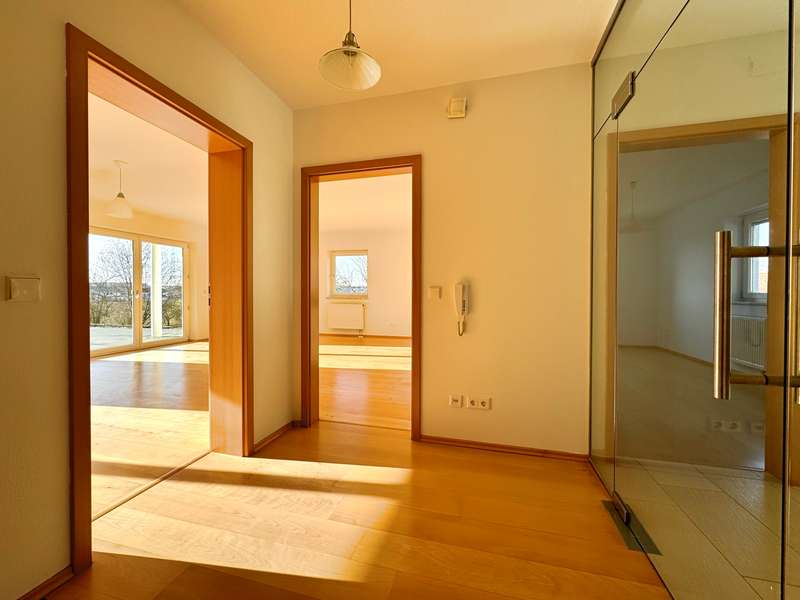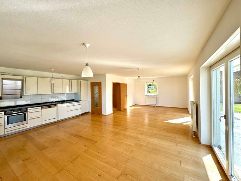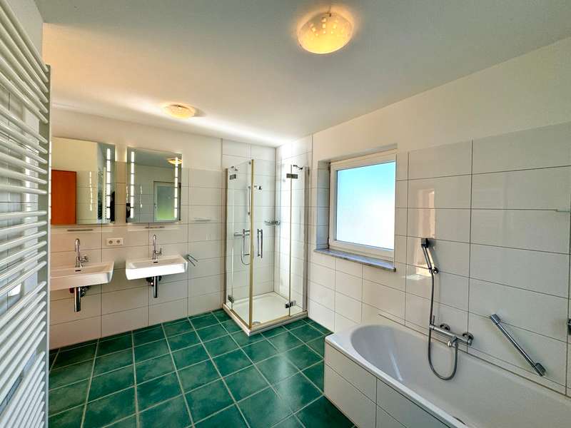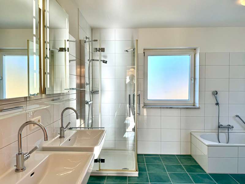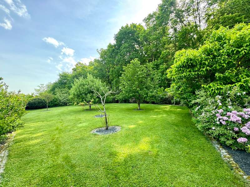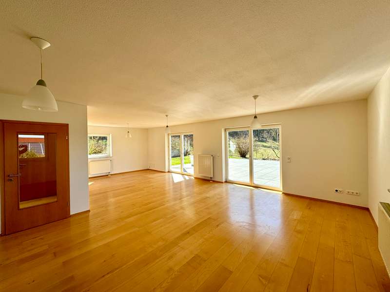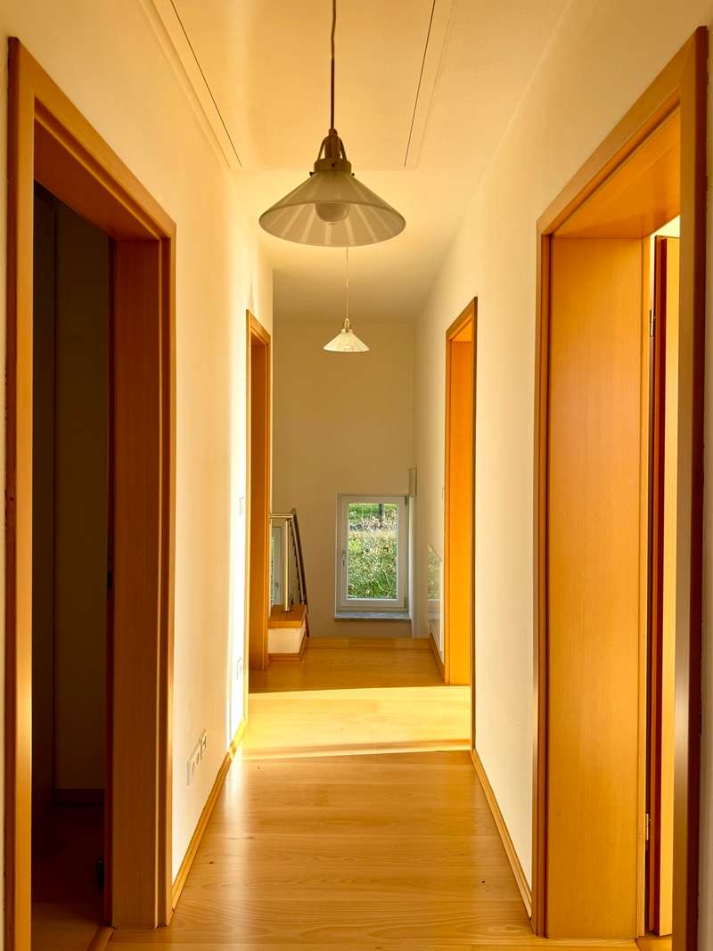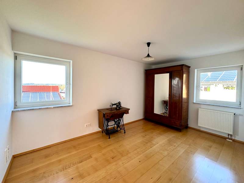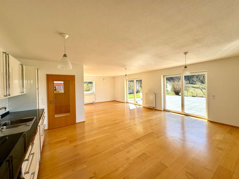 Welcome to your very own personal retreat, a property that is not just a home, but a lifestyle. Wonderfully situated on a nature reserve, this villa estate is a jewel of peace and beauty, surrounded by an idyllic landscape and yet only a few kilometers from the vibrant old town of Regensburg. This exceptional property extends over a generous plot of over 2,200 square meters, which was designed by a renowned landscape architect. It not only offers a breathtaking view of the surrounding nature reserve, but also an incomparable panoramic view of the picturesque landscape. Here you can experience the harmony between nature and luxury. Access to this paradise is granted by an electric roller shutter gate with a long driveway that transforms the property into a private oasis. A spacious garage and paved forecourt provide ample space for your vehicles, while a covered connection between the garage and entrance area ensures dry paths, even in bad weather. The villa-like detached house is presented in immaculate condition with state-of-the-art energy efficiency thanks to solar panels and a well thought-out construction method. With a total of eight rooms on 185 square meters, it offers an optimal room layout for comfortable living in a prime residential location. Upon entering the house, you are greeted by an inviting vestibule that leads to a guest bedroom and a guest bathroom, both with high-quality fittings and attractive tiled décor. The open-plan living areas on the first floor are characterized by high-quality parquet flooring and offer space for a modern fitted kitchen as well as a living and dining room with floor-to-ceiling patio windows that provide plenty of light and direct access to the spacious west-facing terrace. An elegant wooden staircase leads to the bedrooms and children's rooms, all of which are equipped with a wonderful panoramic view and modern amenities. The master bedroom has its own dressing room and access to a large balcony, while a second children's bedroom and a luxurious bathroom with bathtub and floor-to-ceiling glass shower are further highlights of this floor. The house also offers plenty of additional space in the basement, including a large heated hobby room, a laundry room and ample storage space to suit your needs. The extensive garden area comprises two areas: one with valuable plant stocks and one with a meadow orchard, which is managed by an intelligent robotic lawn system. Enjoy the privacy and tranquillity as you stroll through your own orchard or explore the beauty of the adjacent Kreuther Forest. Sale against bid in a bidding process - minimum offer 465,000 euros. Viewing period on Sunday, 07.07.24 from 12.00 to 14.00. Please register in advance for the viewing.