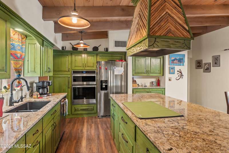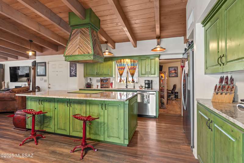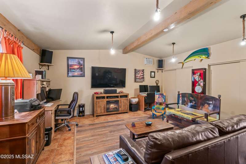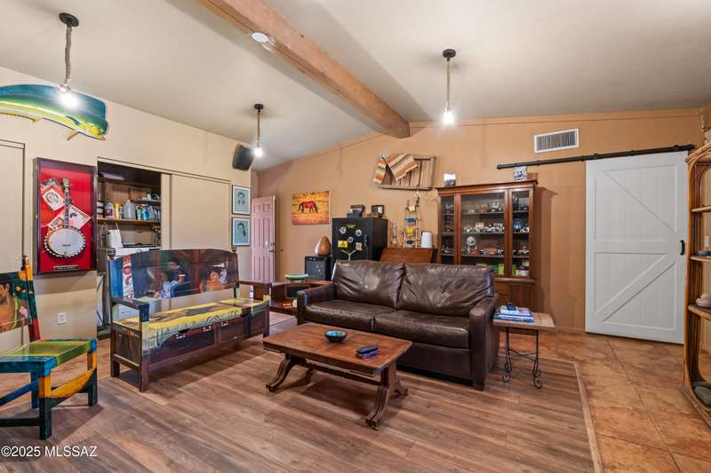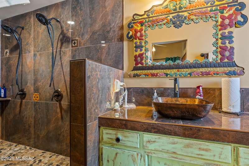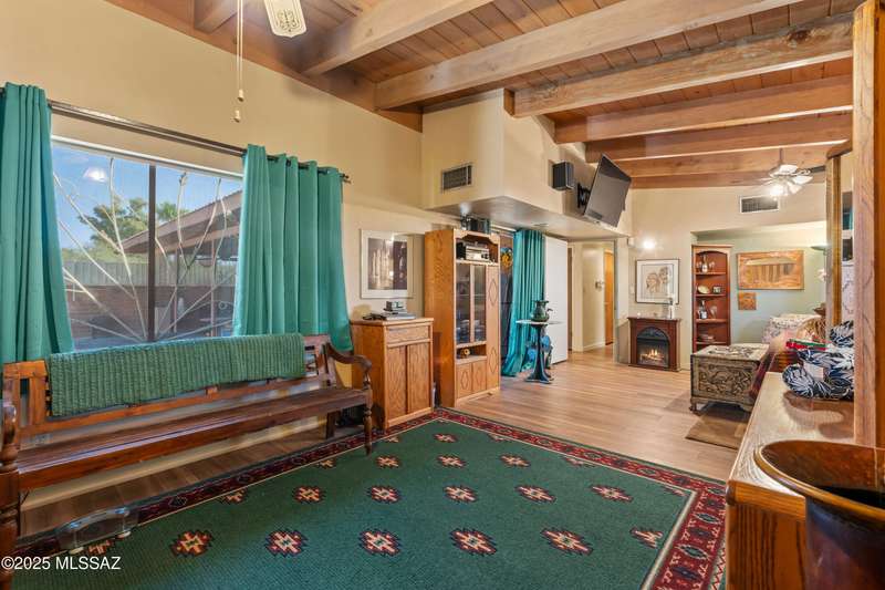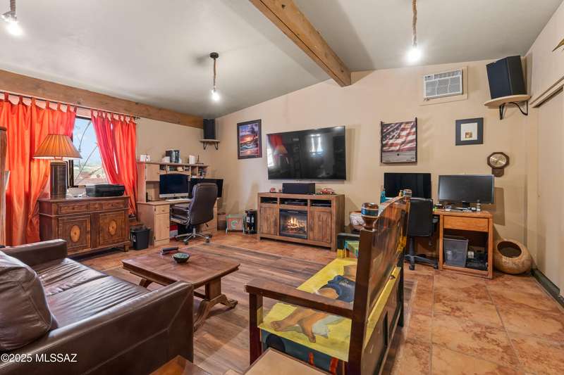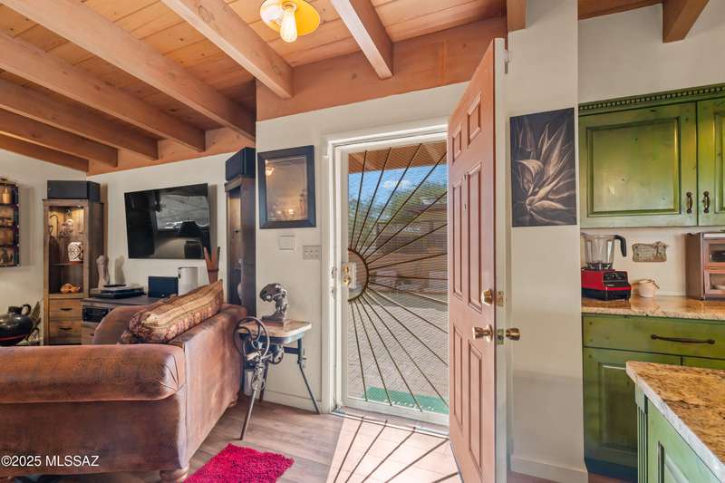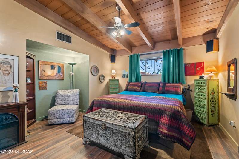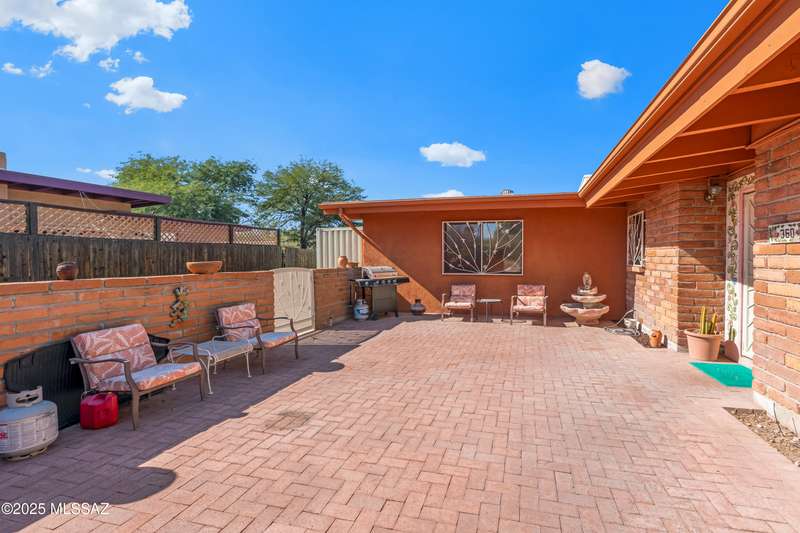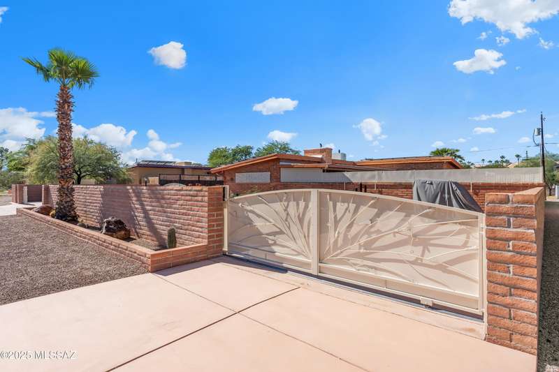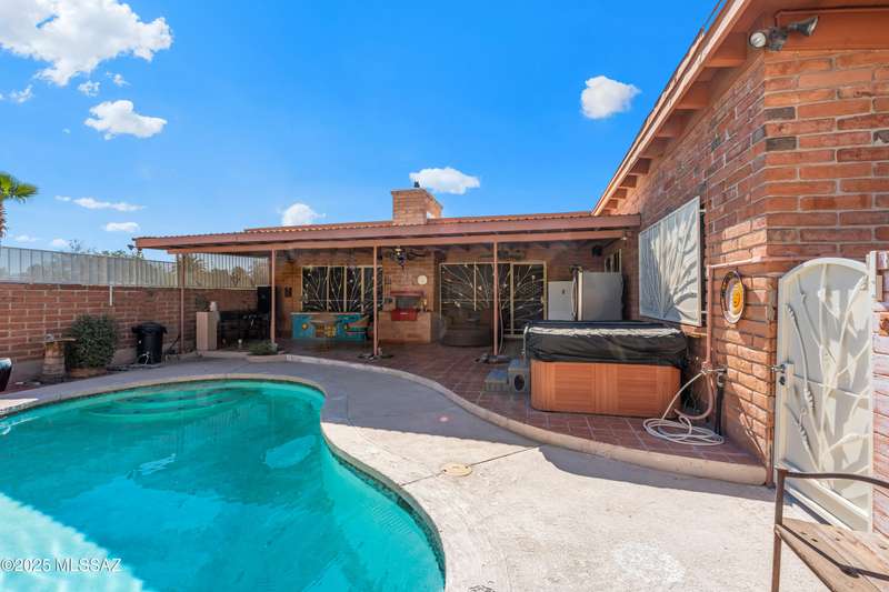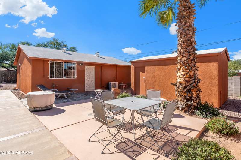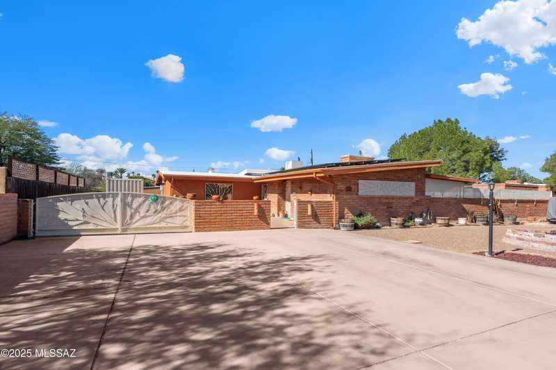 Discover the mid-century beauty combined with southwest charm of this tastefully updated burnt adobe home in historic Wilshire Heights. A unique find offering a conventional pool, jacuzzi, RV hookup, a 540 sq. ft. detached studio perfect for converting to a guest house/casita, or ready to use as a home office, plus another detached building with a retractable roof that was used as an observatory. This .35-acre property also offers a front courtyard with entry tiles commissioned by renowned Tucson artist, Kay Mallek, and two private patios for year round relaxation and entertaining. The side covered patio even features a built-in barbecue. There are also two more storage buildings, and wine barrels for container gardening.