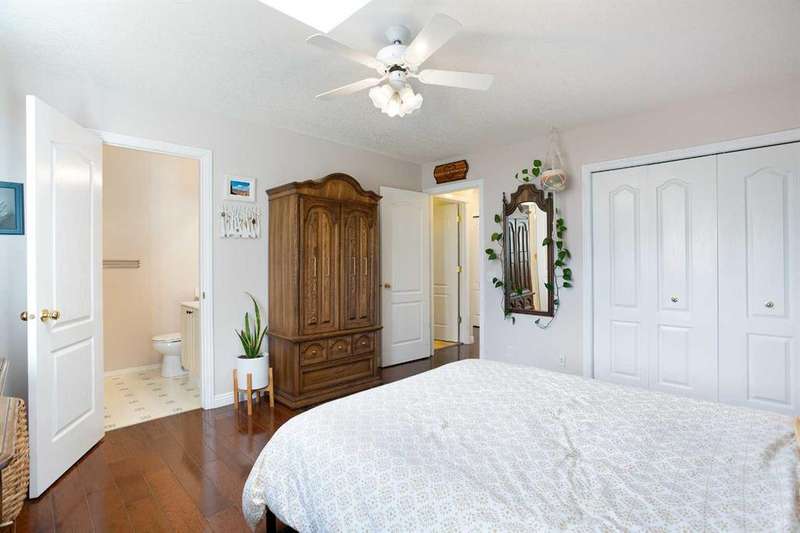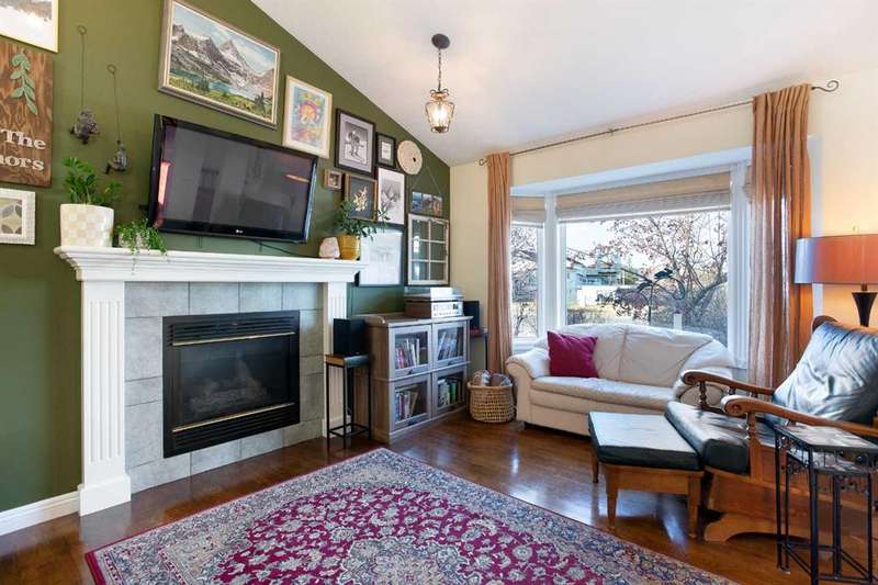Experience the charm of this 2,640 square foot home in Airdrie's Canals by CHECKING OUT THE 3-D TOUR! This well-maintained bi-level home features a family-friendly layout, vaulted ceilings, hardwood floors, and a finished basement. When you first walk into the home, you'll notice a large front entry with tile floors, and a spacious living room with a gas fireplace and enough room to seat the whole family. Up the stairs, you'll find a cozy reading nook that could also be used as a formal dining room, or home office. The kitchen offers style and function with its classic white cabinets and functional working triangle. You'll also find an abundance of natural light, a dining nook, and a patio door leading onto your private back deck. The upper level is where you'll also find three nicely sized bedrooms and one large 4-piece bathroom. The primary suite feels like a true sanctuary with the calming paint colours, skylight, and 3-piece ensuite (complete with a stand-alone shower and skylight). The lower level is built for entertaining with a huge flex room that features architectural coffered ceilings, newer carpeting, newer windows, built-in surround sound speakers, and a gas fireplace. You'll also find a fourth substantial bedroom, a massive storage room, a large laundry room, and a 3-piece bathroom, adding to the charm of this stunning home. Practicality meets convenience with an insulated double attached garage and a nicely sized yard featuring an underground sprinkler system. Conveniently located near schools, playgrounds, walking paths, and parks. With fantastic access to routes in and out of the city, your commute just got easier. This is a rare opportunity to own a beautifully maintained home in an exceptional location. Be sure to CHECK OUT THE 3-D Tour. Don't wait - book your private showing today!