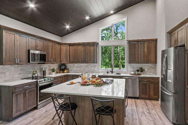 Welcome to 1177 Trap Trail, a stunning new construction home nestled in the heart of Rome, Wisconsin. Situated within the highly desirable Lake Arrowhead community, this thoughtfully designed home blends modern comfort, quality craftsmanship, and access to some of Central Wisconsins best recreational amenities. Whether you're looking for a year-round residence or a relaxing getaway, this home delivers an exceptional lifestyle in a beautiful wooded setting. Step inside to an inviting open-concept floor plan filled with natural light. The spacious main living area features vaulted ceilings and oversized windows that highlight the surrounding nature. The kitchen is a chefs dream, complete with custom cabinetry, solid surface countertops, a large center island, and a walk-in pantry offering both function and style. The adjacent dining and living areas provide the perfect layout for entertaining or cozy nights at home, anchored by a sleek, modern fireplace that adds both warmth and ambiance. A convenient main-floor laundry room is just steps from the attached garage. The primary suite is a private retreat, featuring a tray ceiling, generous walk-in closet, and a luxurious en-suite bath with dual vanities and a beautifully tiled walk-in shower. Two additional bedrooms and a full bath offer comfort and flexibility for guests or family. Just off the dining area, you will find a gorgeous three-season porch, ideal for sipping morning coffee or enjoying evening breezes. The attached covered patio extends your living space outdoors and is perfect for grilling, dining, or relaxing around a fire table. Downstairs, the lower level offers even more room to grow. The yard will be professionally graded and seeded, making it move-in ready from day one. Set in a prime location, this home is just minutes from the Lake Arrowhead Clubhouse Chalets and the world-renowned Sand Valley Golf Resort. As part of the Lake Arrowhead community, you will enjoy access to premier amenities such as two championship golf courses, amazing pickleball courts, heated pools, private beaches, tennis courts, boat launches, marinas, and miles of scenic trails. Dont miss this incredible opportunity to enjoy luxury living and outdoor adventure in one of Wisconsins most sought-after destinations. Schedule your private showing and experience everything this remarkable home has to offer.