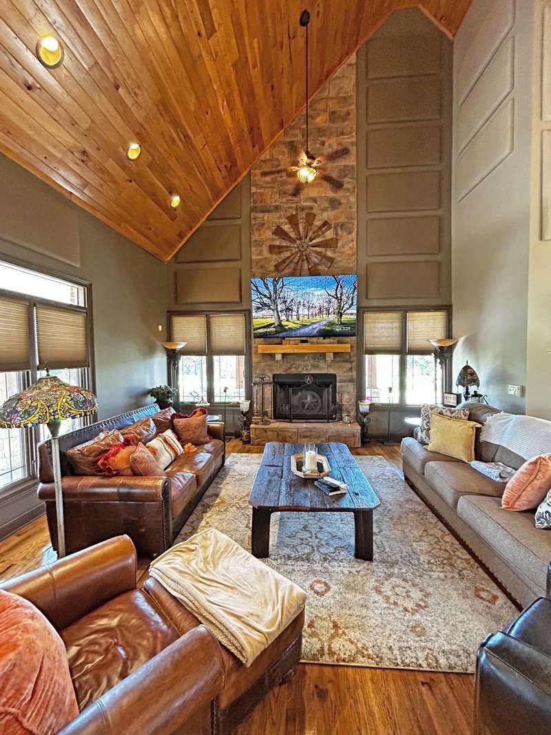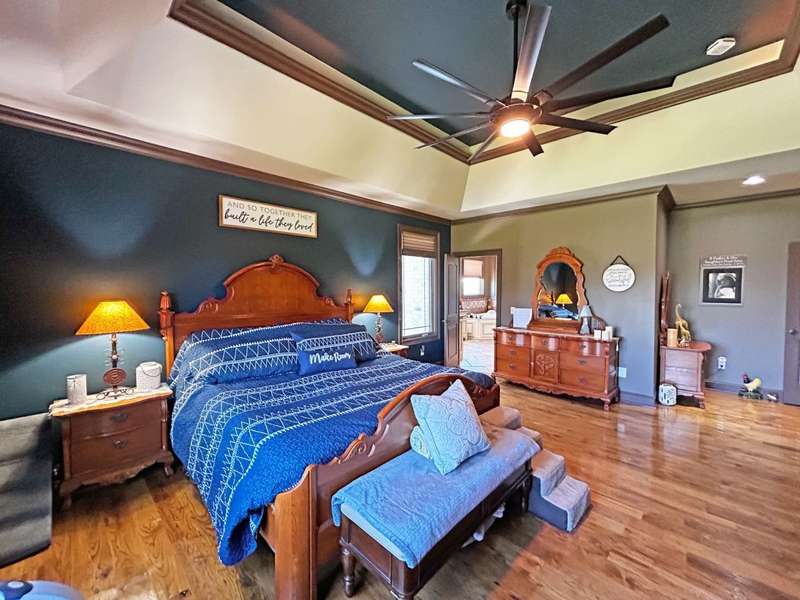 Move in Before Christmas!! This Absolutely Gorgeous Custom-Built Home on 5 Lovely Acres is a Charmer you will not want to miss. 4 BR 4 1/2 Baths. Beautiful Kitchen with Granite Counter Tops, Double Pantry, SS Appliances (Double Ovens, Built-In Microwave, Dishwasher, Refrigerator, Bun Warmer) that opens to a nice breakfast room which flows to the relaxing family room with wood burning fireplace. Primary suite is on the main level and has a jacuzzi tub, tile shower, heated floor, and huge walk-in closet. Delightful Media/Game room upstairs. Safe room and heated & cooled work area down. Abundant storage over the 3-car garage. Side porch with wood burning fireplace. Patio with Hot Tub. Furniture is negotiable. Seller is offering up to 45k for interest rate buydown or closing costs. Comes with One Year Eagle Premier Home Warranty. This one has it all. Do not miss it.
