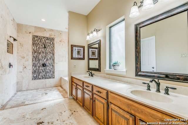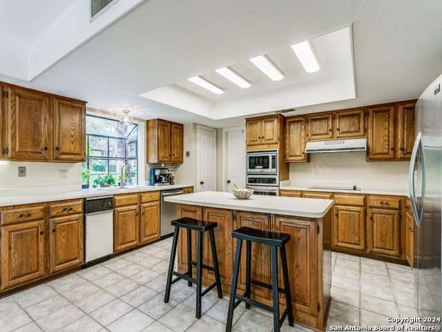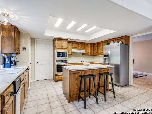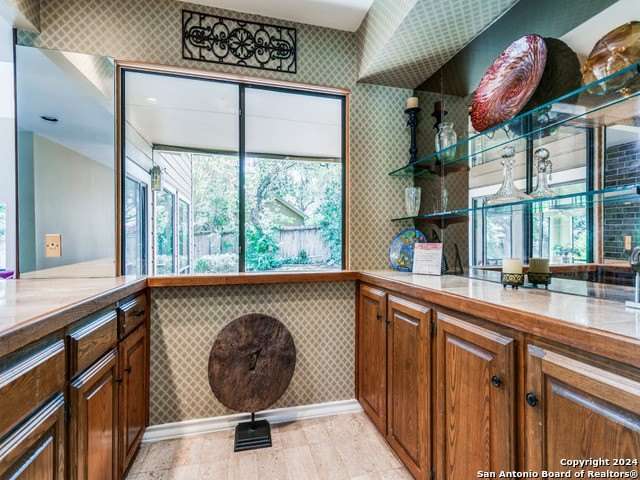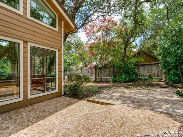 Fantastic opportunity to get into prestigious Elm Creek at an incredible value! This 4-bedroom, 3-bath home has great bones and endless potential. The seller is covering the cost of a brand-new metal roof-and you get to choose the color! The home also features three Trane HVAC systems, with two recently replaced in 2024 (3rd is only 5 years old). Situated on a prime corner lot, this residence offers soaring ceilings, a wet bar, and a bright, open living space that flows seamlessly to a serene, partially covered patio. The primary and secondary bedrooms are conveniently located downstairs, while two additional bedrooms upstairs share a Jack-and-Jill bath-perfect for families or guests. Located in one of San Antonio's most desirable Northside gated communities, Elm Creek offers easy access to the Medical Center, major highways, top dining, and shopping. Don't miss your chance to make this home your own!
