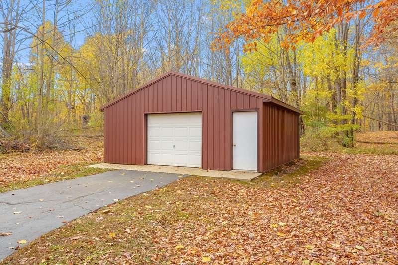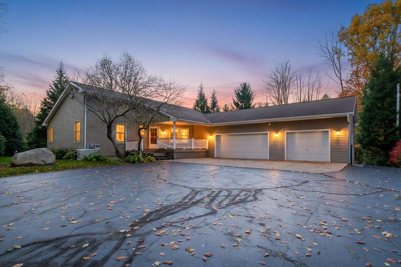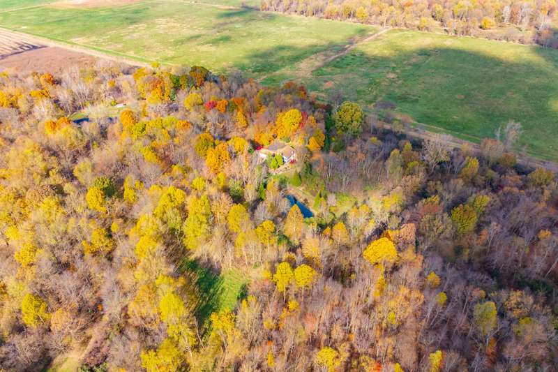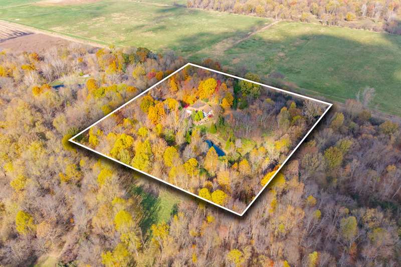 Back on the market at no fault of Sellers. Here is your chance to purchase this amazing property! Rare Find! One owner ranch on over 10 acres with a pond and pole barn! Not many properties like this come on the market! This walkout ranch sits on over 10 peaceful acres, offering a true sanctuary with a pond stocked with bass and bluegill, full grown trees, and beautiful landscaping filled with flowers and perennials. Bird enthusiasts will love the variety of species spotted here (near the Oswalt Family Farm, known for over 156 species). The property also includes a large pole barn with electricity - perfect for storage, hobbies, or equipment. Enjoy main floor living with an open living room, dining, and kitchen area. The kitchen was beautifully remodeled in 2021 and features granite countertops, hardwood floors, tile backsplash, and included appliances. Just off the kitchen are the main floor laundry and a convenient half bath. One of the many highlights is the two screened-in porches - one off the main living area and another off the lower level family room both ideal for relaxing and taking in the serene surroundings. The main floor primary suite includes wood floors, a walk-in closet, and a spacious bath with a stand up shower and jacuzzi tub. A second bedroom with wood floors and another full bath complete the main level. The finished walkout basement offers a large family room with a gas fireplace, built-in shelving, and an additional space perfect for crafts or storage. The lower screened porch with its wood ceiling adds even more charm and comfort. Additional features include a newer furnace and roof, a whole house generator (serviced annually), and a 3 car attached garage that is insulated, heated, plumbed with water, and has 12 foot ceilings! The deck features a built in bench and flower boxes - an additional outdoor space to enjoy your private haven. This property is truly special - a peaceful retreat with endless beauty. Low taxes are a bonus! Move right in and start enjoying everything this unique home has to offer! Seller is selling as is.