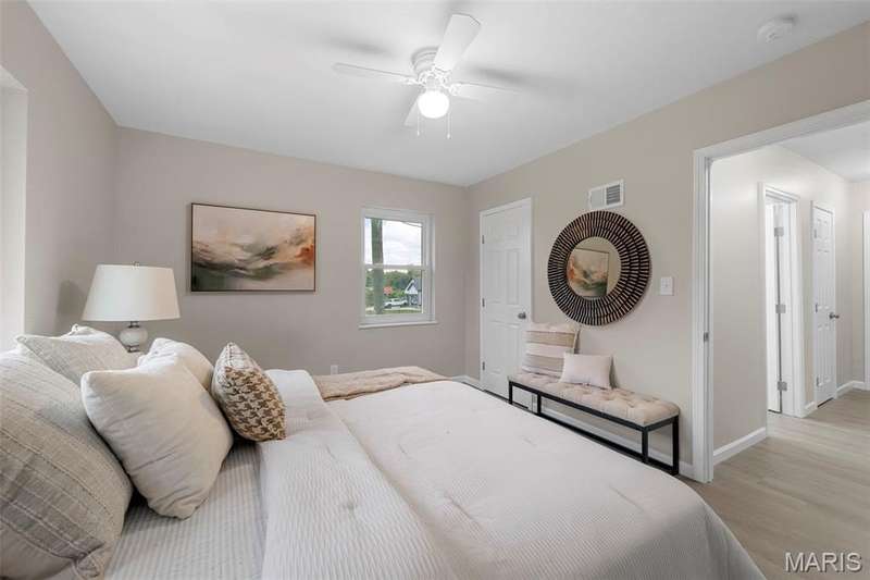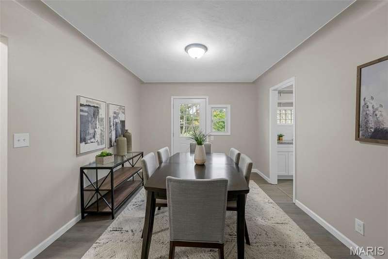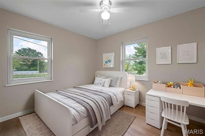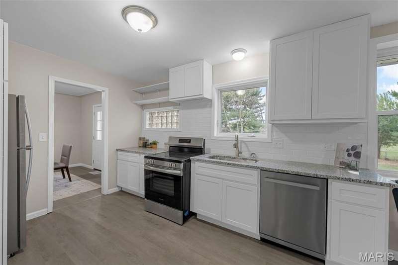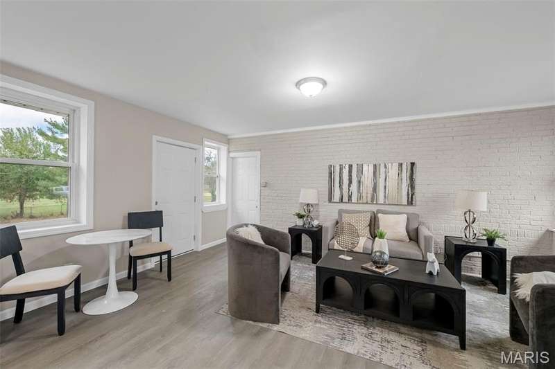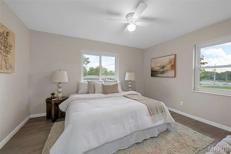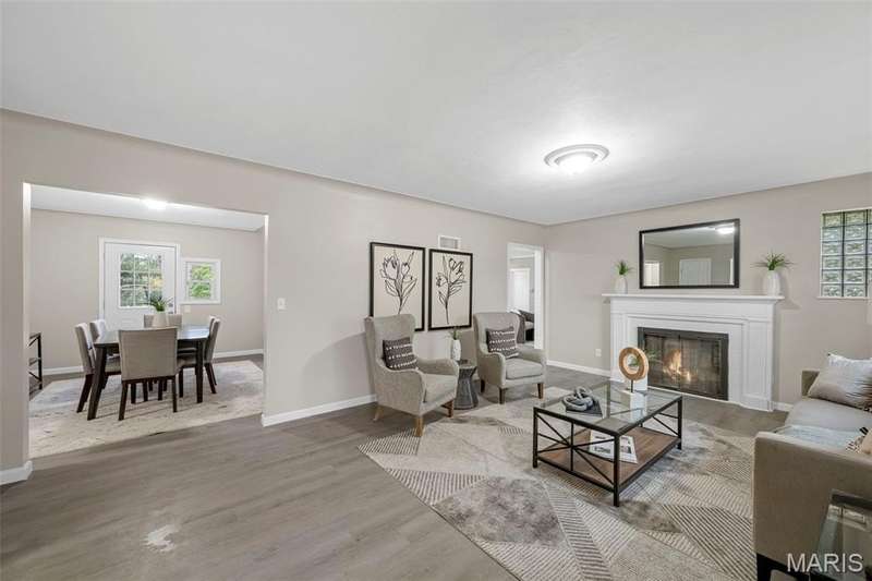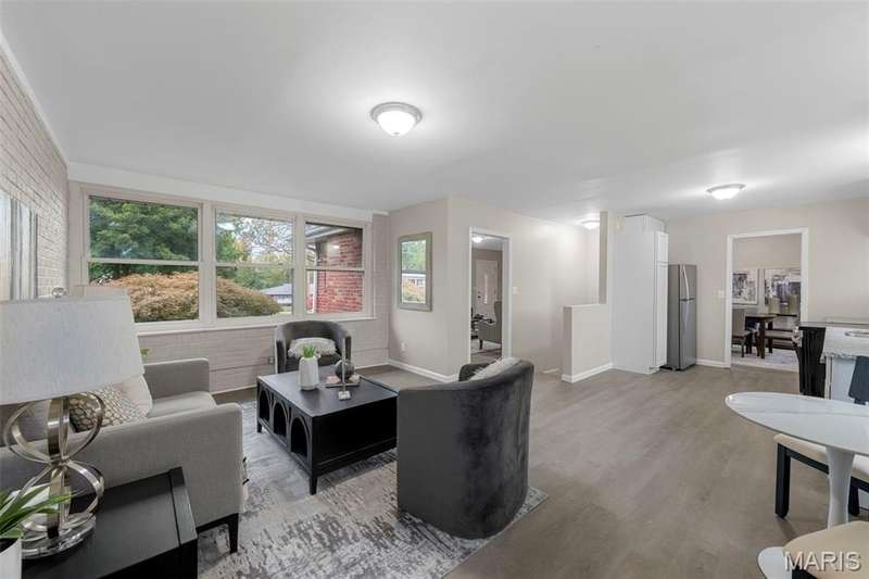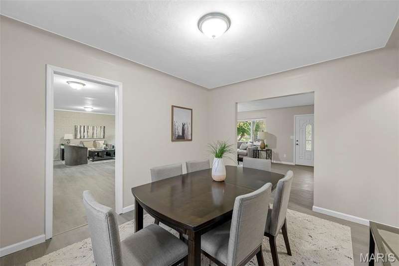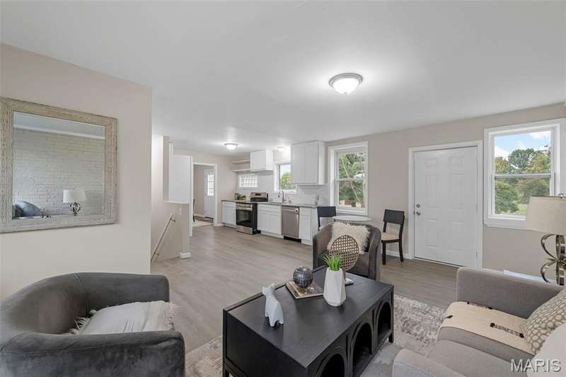 Welcome to 4500 Spring Road, a charming brick ranch perfectly positioned on an oversized lot in South County. With modern updates throughout and a prime location next to the park, this home offers both space and style. Step inside to find updated flooring and spacious rooms anchored by a decorative fireplace, creating a warm and inviting focal point in the living room. The open kitchen features white cabinetry, granite countertops, and a sun-filled bonus or breakfast room, making it a cheerful space for everyday living. A separate dining room provides flexibility for larger gatherings or an ideal home office setup. The main level offers two comfortable bedrooms with ample closet storage and a fully updated bath complete with new vanity, fixtures, and modern finishes. Downstairs, the finished lower level adds incredible versatility with an egress bedroom, full bath, and cozy recreational area—perfect for guests or additional living space. You’ll also find ample storage and walk-up access to the expansive backyard and large side patio—ideal for outdoor entertaining or quiet evenings at home. This home combines classic charm with fresh updates in a highly desirable location!
