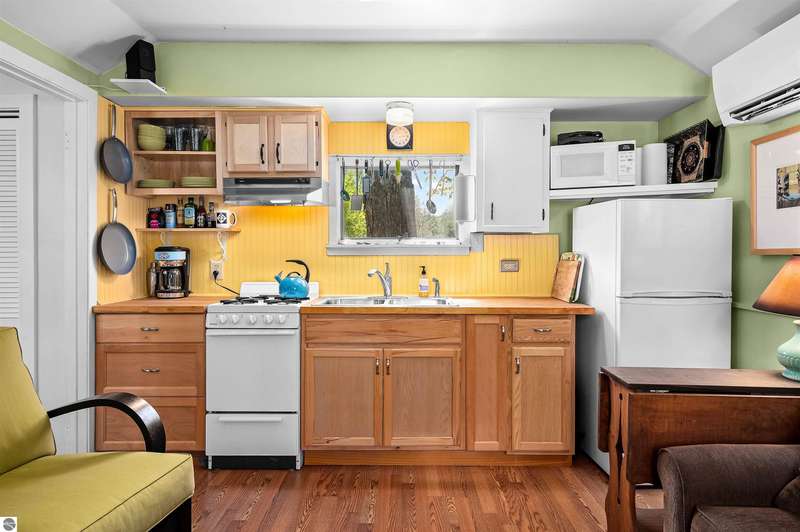 Welcome to your own slice of Northport charm--this cozy 1-bed, 1-bath cottage blends simple comfort with a peaceful, wooded setting just moments from the village. Set within a small cottage community on 2 shared acres, there's a quiet trail system and a scenic two-track path that leads to 75 feet of shared frontage on Northport Bay--perfect for launching a kayak or soaking in the view. Inside, you'll find a bright, well-kept space with a Mitsubishi mini-split, updated kitchen cabinets and countertops, newer appliances, and it's being sold fully furnished--ready to enjoy or rent as a short-term getaway. The property's turnkey setup, walkability to town, and serene wooded setting make it a fantastic seasonal rental or low-maintenance escape. Northport offers a true Up North lifestyle, surrounded by world-class wineries, local cideries, great dining, scenic hiking, and a vibrant, tight-knit community. Whether you're looking for a relaxed second home or an investment in one of Leelanau County's most beloved towns, this cottage delivers the perfect mix of charm, setting, and opportunity.