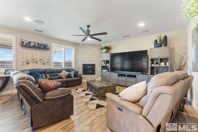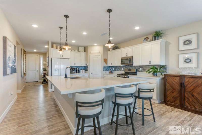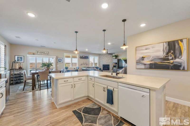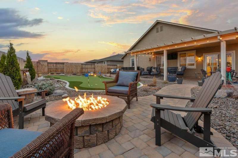 Stunning single level home in the sought after Northridge community. This 3 bedroom, 2 bath home offers thousands in upgrades, which include a kitchen that is a chefs dream, featuring an oversized quartz island, quartz countertops, custom back splah, upgraded cabinetry throughout, luxury vinyl plank flooring, stone surrounded fireplace, and an enlarged primary shower. A 14'x28' custom patio cover welcomes you to the quiet backyard sanctuary. Entertain family and friends with your built in outdoor, kitchen, relax by the firepit with sounds of the custom water fall or participate in fun putting competitions. This home is a must see. Welcome Home!