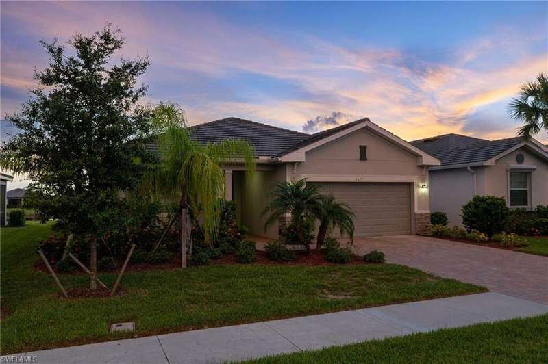 What a stunning newer construction home available here in Hampton Lakes at River Hall! This beautiful Lennar Venice home is ready for the next family to call it home! This home is one of Lennar's famous floorplan's here in Hampton Lakes at River Hall offering 1,852sq ft, 3beds/3baths, split and open floorplan, tile throughout the entire home for your convenience, stainless steel appliances, white cabinets throughout, granite counter tops, large kitchen island, pantry, laundry room, two car garage, and gorgeous western rear exposure to get those beautiful southwest Florida sunset views every day! The primary room is at the rear of the home while the secondary bedrooms are in the front area making this home more than perfect for every day living and entertaining. The primary suite offers his and hers walk in closets, an ensuite bathroom featuring dual sinks, and a great walk-in shower. Your screened and private covered lanai conveniently faces west so you can enjoy those daily gorgeous sunset views. Want a pool too? No problem! This perfect lot offers more than enough room for you to build your own unique pool. Enjoy all of the resort style amenities that Hampton Lakes has to offer including the clubhouse with a lagoon style pool, full second story gym, library/study room, basketball court, tennis/pickleball/bocce courts, children's play area, restaurant, golf for a fee or OPTIONAL membership, and much more! This home and community is perfect for anyone and the highly rated River Hall Elementary School is just a walk/bike/golf cart ride away! Don't miss out on this opportunity to own your dream home in Hampton Lakes at River Hall!