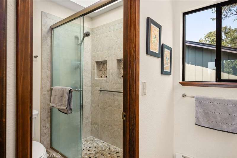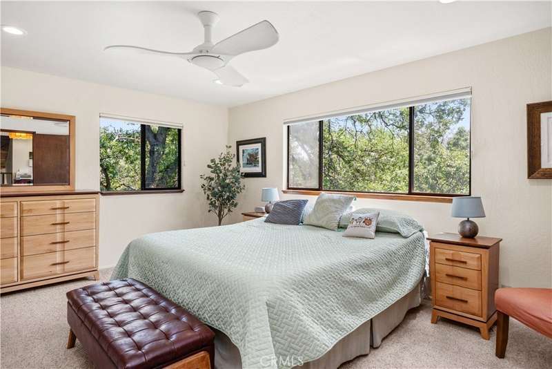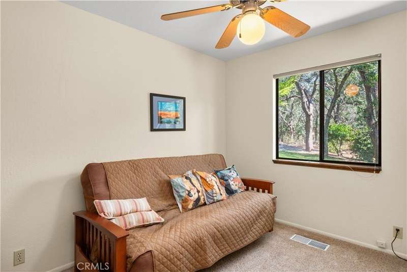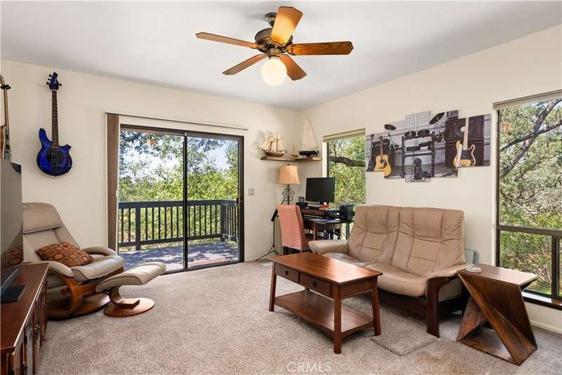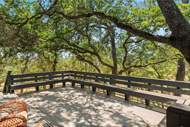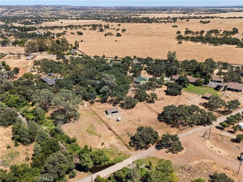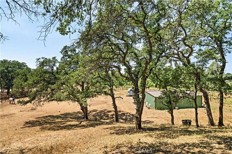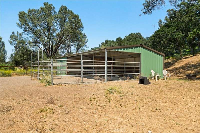 Let your North Chico house hunt stop here! Sitting on over 3 acres, this custom built home is in a private setting among the oak trees set far down a private drive with lots of amazing features. You'll immediately be drawn to the warm, high, tongue and groove ceilings that run throughout the main living and dining area. You will notice all of the windows capture the natural beauty of the terrain. The living room features large windows looking out to the back yard allowing for plenty of natural light, high ceilings, a cozy fireplace, and a custom built-in set of shelves. In the kitchen the same custom cabinetry compliments the bright white quartz counters, tile floors, and stainless steel appliances. Off the kitchen is an oversized den with a wet bar, stacked laundry, and garage access. The two guest bedrooms with a shared bathroom are situated downstairs. Up the stairs is a landing with a home office area and the master suite just beside. The master suite is very spacious and is truly a retreat with views of the property out every window! There is a walk-in closet, ensuite bathroom with tile shower and large vanity with lots of counter space. Outside is where the best features of the home truly shine, including the expansive deck with hot tub! This is the perfect space for entertaining, sipping morning coffee, or simply sitting and listening to the birds chirp. On the rear, lower part of the property, there is a new two stall metal horse barn with pen while the entire property is cross fenced making this property perfect for any other livestock or furry friends. Other notable features of the property include a newer tankless hot water heater, new exterior paint, roof under 10 years old, gutter guards to reduce annual leaf maintenance, mature landscaping with automatic sprinklers, a storage shed, and a paved driveway. This property is truly unmatched with the one-of-kind design and privacy just waiting for you to call it home!
