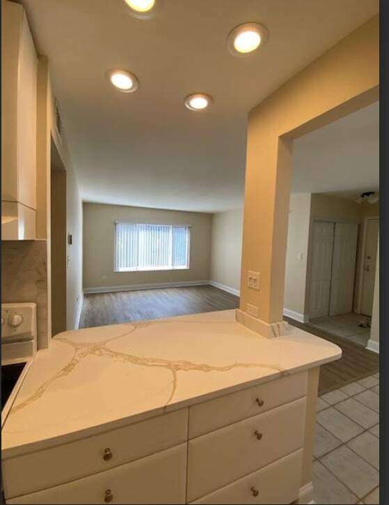 Elegant recently remodeled first-floor 2 bed, 1 bath condo in the Knolls with open sunny interior and south exposure; Beautiful kitchen features white tall cabinets, elegant recessed lighting, new sleek quartz countertops, mosaic backsplash, and pass-through window to the living area. New vinyl plank flooring throughout; Plenty of organized closet space; Large walk-in closet in the primary bedroom. Plenty of unassigned exterior parking. The Knolls offers several recreational amenities include two outdoor pools, exercise facilities, sauna, tennis and volleyball courts and a large clubhouse. Rent includes heat, water & scavenger. Great central location; short drive to major expressways, shopping and world-class Oak Brook Mall. Located in the highly-rated Hinsdale Central high school district.