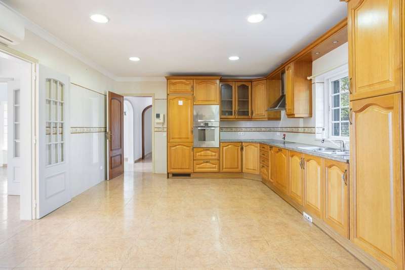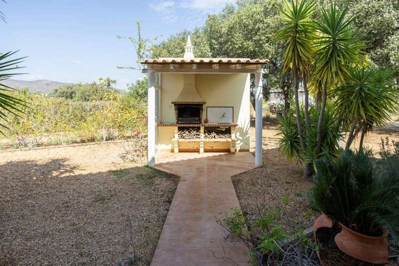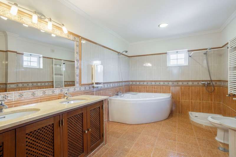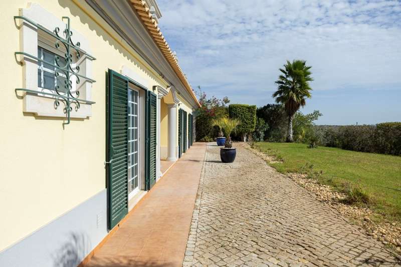 Magnificent 5 bedroom villa, set in a vast plot of approximately 14,000 m², with fruit trees and a variety of ornamental plants. Combining rustic charm with contemporary comfort, this property offers an authentic haven of tranquillity and natural beauty, enjoying breathtaking views over the Atlantic Ocean and the Ria Formosa, in Olhão. On the ground floor, there is a large fully equipped and furnished kitchen, a practical laundry room and a spacious living room with a fireplace, from where you can contemplate the immensity of the sea. This floor also has a suite, two bedrooms, two bathrooms and an office, ensuring the perfect balance between functionality and family comfort. The first floor accommodates two additional bedrooms and a master suite with a walk-in closet and a generous bathroom. All the rooms on this floor have direct access to an extensive terrace, ideal for enjoying the views of the sunrise and sunset over the ocean, in a setting of serenity and inspiration. The villa also has a closed garage for two vehicles and several outdoor parking areas. Comfort and efficiency are ensured by solar panels for water heating, air conditioning, double-glazed window frames, an alarm system and ample storage areas, offering practical and sophisticated living. This is a unique opportunity to acquire a dream home in the Algarve, where natural beauty, privacy and elegance come together in perfect harmony. Located just 6 km from Praia dos Cavacos and the center of Olhão, the property benefits from excellent accessibility to the main amenities and the ferry docks to the islands of Armona and Fuseta - true natural paradises in the Algarve. CHARACTERISTICS: Plot Area: 13 960 m2 | 150 264 sq ft Useful area: 259 m2 | 2 790 sq ft Deployment Area: 195 m2 | 2 094 sq ft Building Area: 296 m2 | 3 189 sq ft Bedrooms: 5 Bathrooms: 4 Garage: 2 Energy efficiency: C FEATURES: 5-bedroom villa Office Laundry room Views over the Ria Formosa Sea views Equipped and furnished Closed garage Land