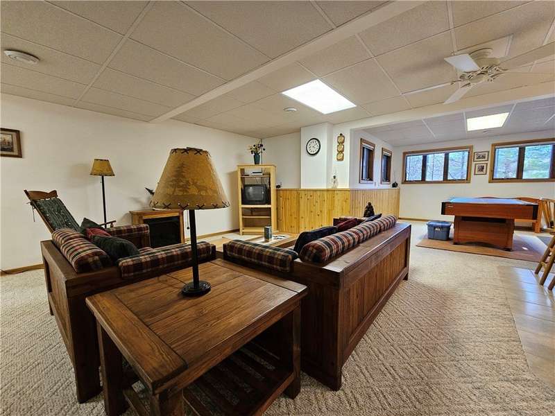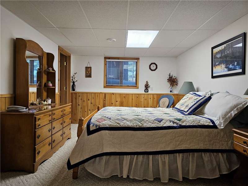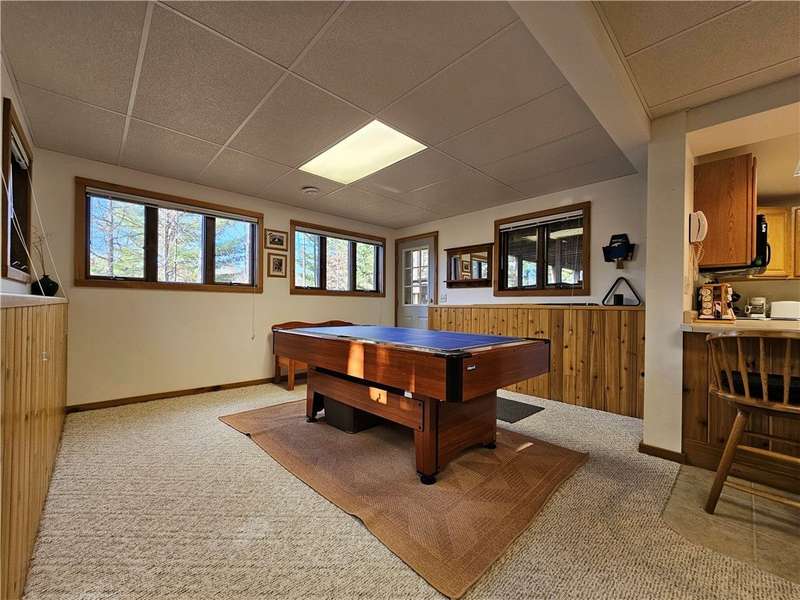Custom built lake home with 100 feet of sandy shoreline on Gilmore Lake featuring 5+ potential bedrooms, 4 bathrooms and almost 4000 square feet! Highlights include an open floor plan with large sunroom overlooking the lake, a centerpiece brick fireplace with 2 built-in bookcases, 3 season cedar porch with access from the owners suite, and so much more! You will love the potential of the walkout lower level that includes a fully appointed second kitchen, large family room, dining area, 2+ bedrooms, 2 baths, a full laundry and a billiards room with views of the lake! Septic system currently sized for a 3BR home. New roof in 2025.