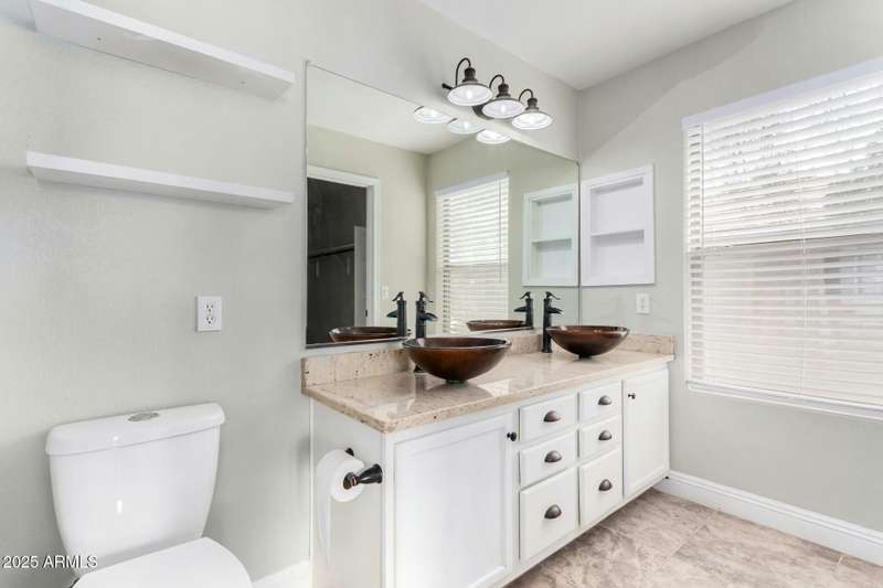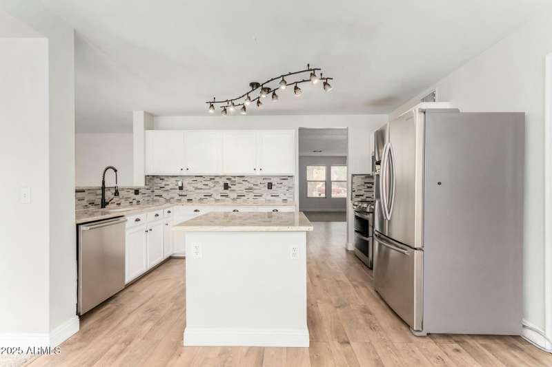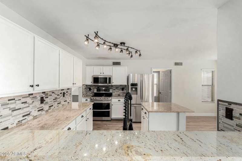 Priced below market!! Amazing 4 Bed, 2.5 bath home in the heart of Gilbert! Nestled on a quiet cul-de-sac, this two-story beauty showcases a great curb appeal with a 2-car garage. The bright interior boasts a spacious living/dining room with a custom accent wall, wood-look flooring in traffic areas, carpet in the right places, tall ceilings, and abundant natural light. The kitchen features custom track lighting, ample white cabinets, tile backsplash, granite counters, SS appliances, an island, and a lovely breakfast room. The oversized family room has a shiplap wall & backyard access. The large loft is perfect for an entertainment area. The owner's bedroom hosts an ensuite with a dual glass vessel vanity & a bountiful walk-in closet.