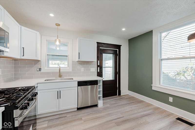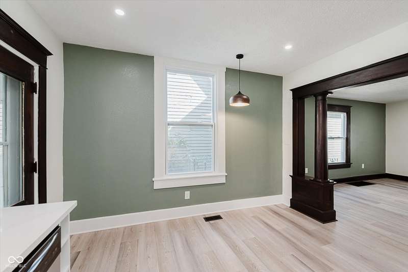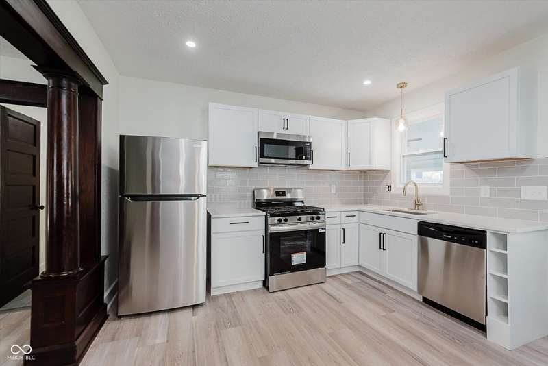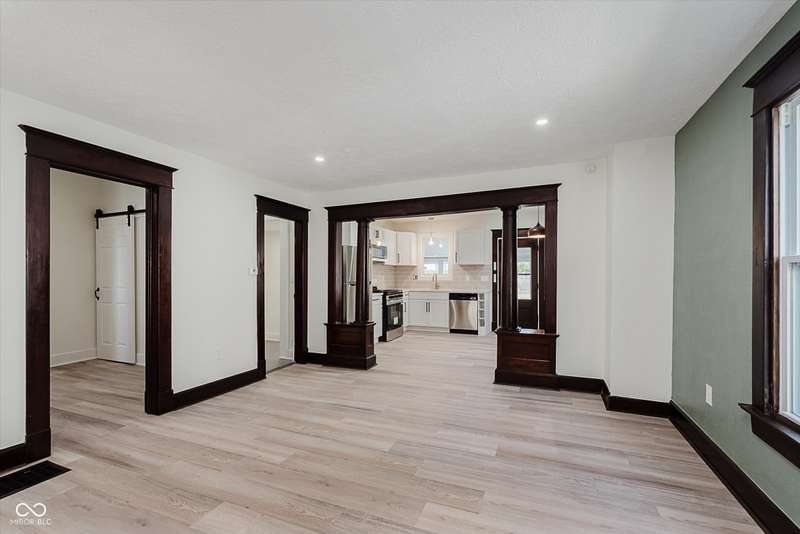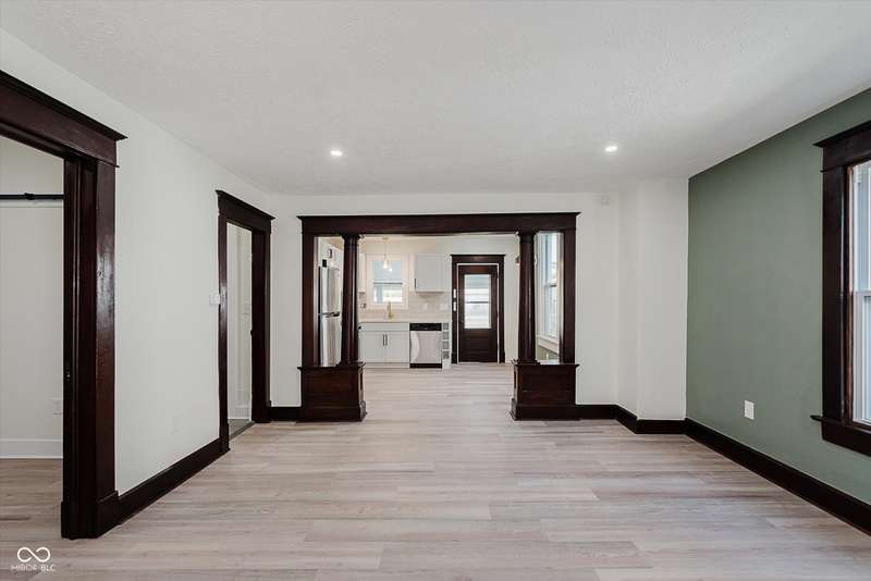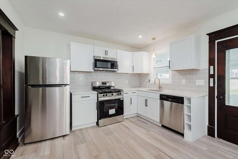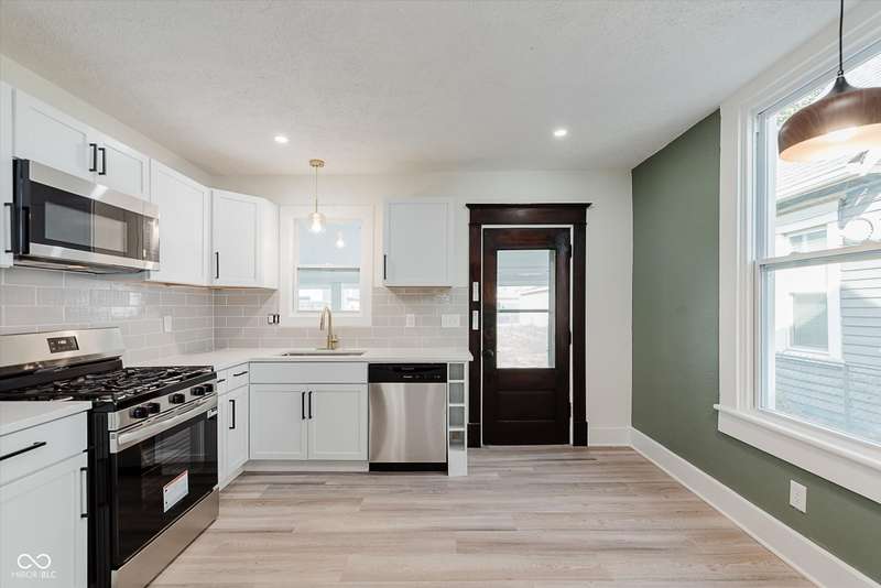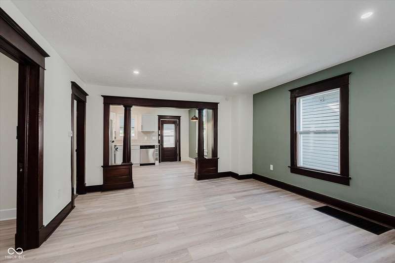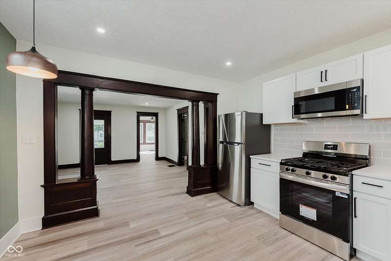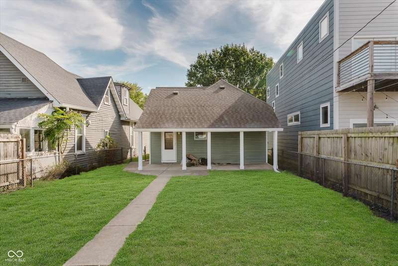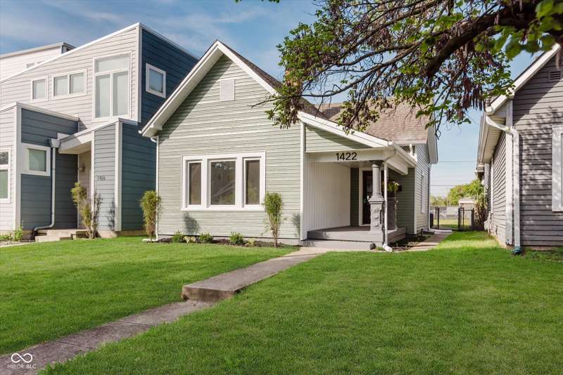 Incredible opportunity to live steps from Fountain Square fun without a hefty price tag! Located just off the strip, walkability here does not disappoint! Charm and character have been preserved in this 2 bed/2 full bath charmer. Curb appeal is at its finest, with fresh paint and a covered front porch- who doesn't love a good porch sit?! Inside, be greeted by a large living room, graciously preserved with original wood columns to highlight the charm, including original, stained trim and doors throughout to match. Newly configured primary suite offers a large closet and attached full bathroom. 2nd bedroom may be small but mighty, offering double closets for storage. Open kitchen provides the perfect sitting area for a dining table, ideal for the master chef, with new appliances, cabinets, and quartz countertops, spilling into the covered back patio and large fully-fenced backyard with off-street parking- perfect for those who love to entertain. Main floor laundry area leads to the spacious full guest bathroom. Unfinished basement has been freshened up and allows for plenty of storage. Aside from the cosmetic updates, newer windows and mechanicals will give peace of mind for years to come. Whether looking for yourself or as an investment, this is the perfect opportunity!