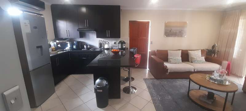 FAMILY HOME WITH THREE BEDROOMS IN ARUNDO ESTATE. This charming property is situated in Arundo Estate. Stunning 3-bedroom, 2-bathroom family home, spacious and has lots to offer. Excellent finishes and well planned! 3-bedroom home is beautifully tiled with built in cupboards. The main bedroom has en suite full bathroom, The 2nd bathroom services the other 2 bedrooms. Kitchen has granite tops; built in cupboards, breakfast nook and space for under counter appliance. The open-plan living area opens to a sliding door that leads into a covered patio with built in braai overlooking a beautiful courtyard garden. This home has a double automated closed off garage with a backup battery to kick at the time of load shedding. Lock and go. Extras are awesome things to have in this charming home, Fiber ready, Alarm systems, DSTV connection already installed, Air conditioning, Blinds in the kitchen, Prepaid electricity and Pet friendly. The estate security features include 24-hour access control. The estate has easy access to the N1 highway and the main roads. Close to all amenities: schools, medical centers, shopping centers. This stunning property is not to be missed - contact me now for an appointment and make your dream come true!