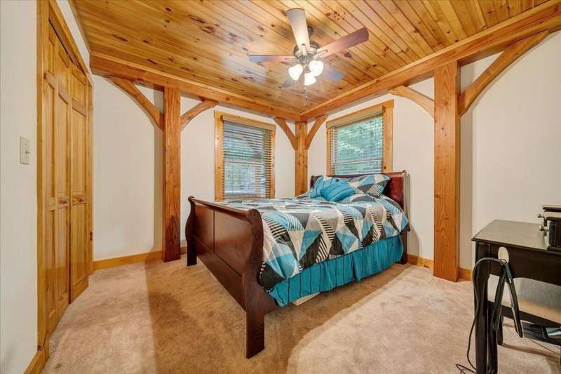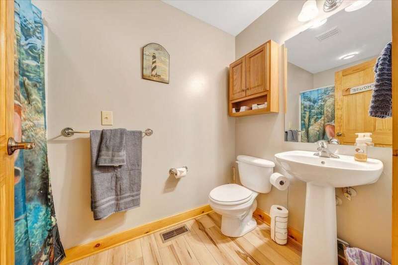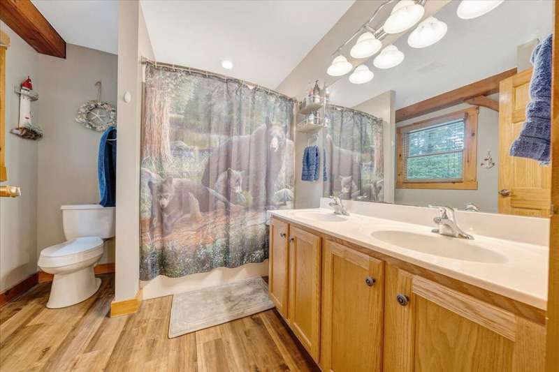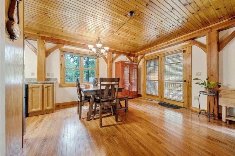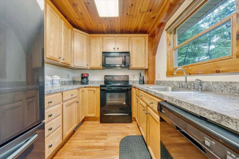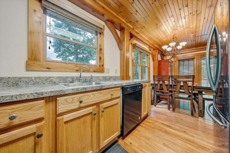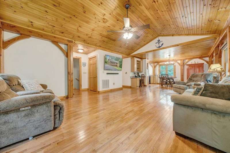 This inviting and cozy home, located in the Village East Subdivision, sits on a generous lot of nearly an acre, offering both privacy and tranquility with seasonal lake views. Step inside to discover a well-maintained, single-level lake home that exudes warmth. The outdoor areas feature a generous front porch, a sizable deck, and a patio complete with a hot tub. Additionally, a firepit nestled among beautifully landscaped gardens creates an ideal setting for entertaining and enjoying memorable moments. Village East amenities include a swimming pool, clubhouse, tennis and basketball courts, as well as a storage area and community boat launch. Conveniently located near restaurants, entertainment, healthcare, and shopping, this home also features a seasonal lake view. Interior highlights