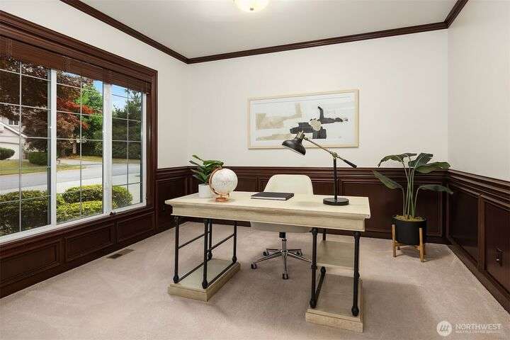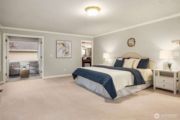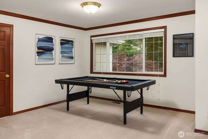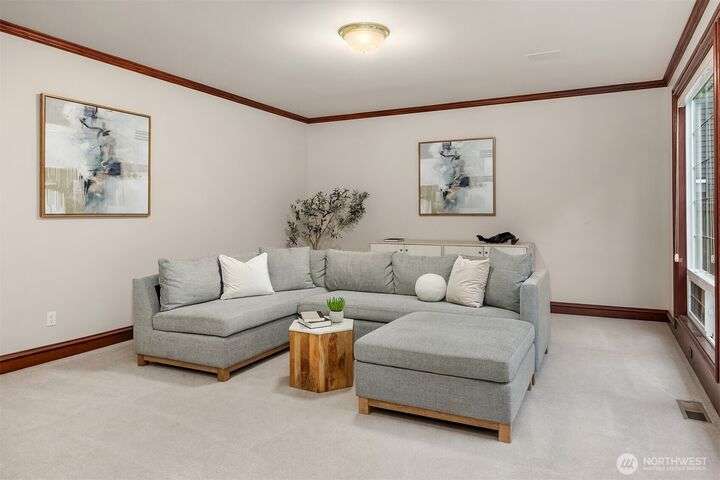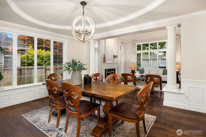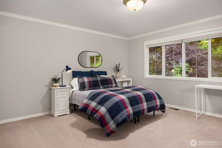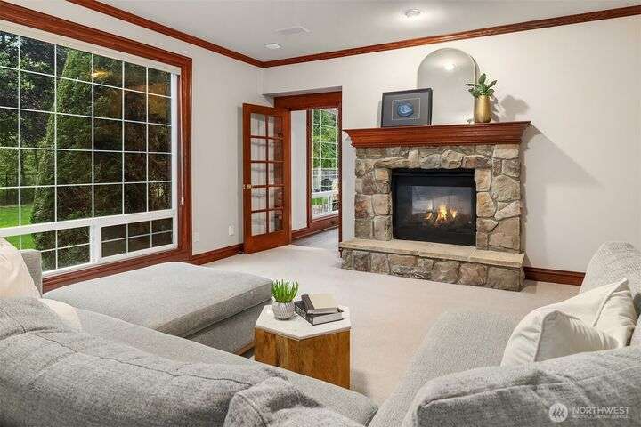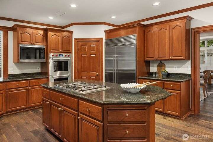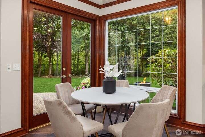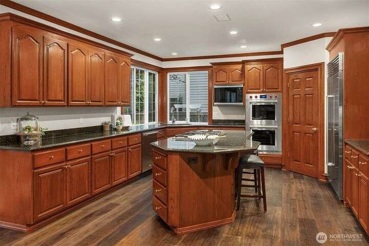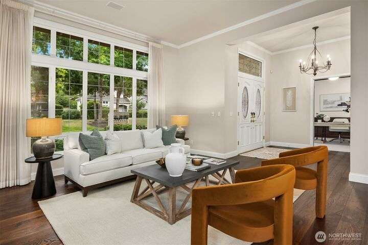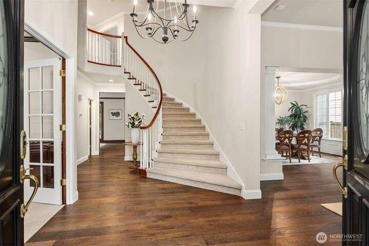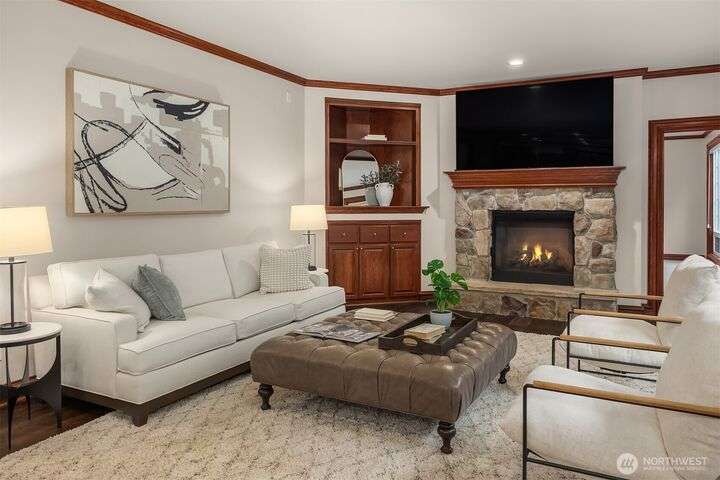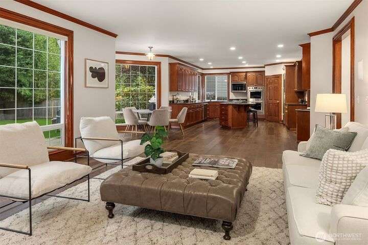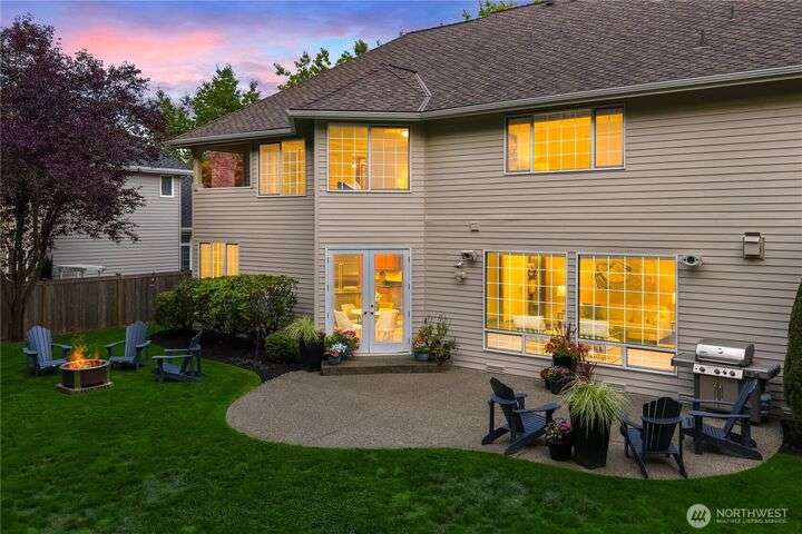Timeless William Buchan home in the coveted Preswick at Trossachs community combines classic craftsmanship & modern upgrades, featuring a dramatic curved staircase, spacious rooms, wide-plank hardwoods & chef’s kitchen w/ newer premium Sub-Zero & Wolf appliances. Versatile living spaces - den, a playroom on main & a bonus room (or 5th bedroom) up! New A/C + a 50-year Presidential roof (2016) enhances comfort & efficiency. Buchan signature millwork, crown moldings & built-ins. Whole-home sound system, security system, 3-car garage & central vacuum. Backing to lush green space, premium lot features a Breeo firepit for cozy evenings outdoors. Mins to top-rated schools, parks & trails w/ easy access to I-90, tech hubs & year-round recreation.