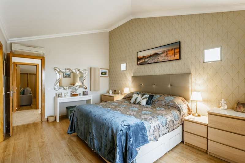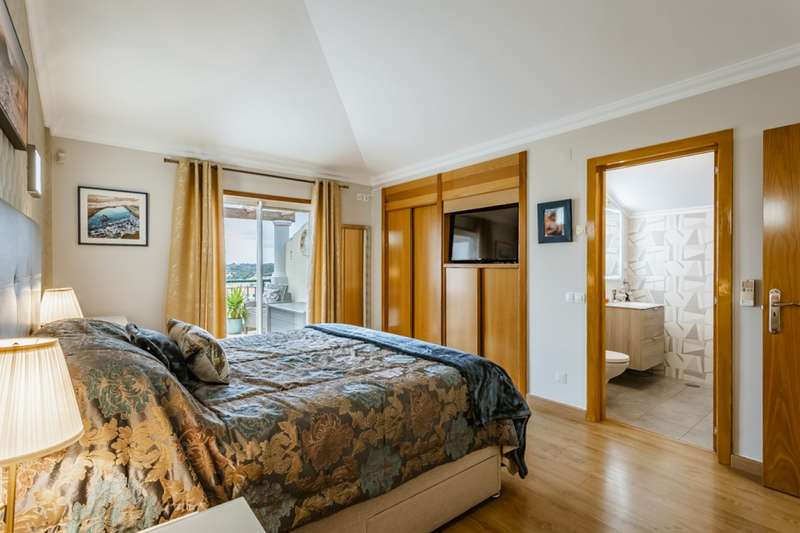 Charming duplex apartment with 3 suites and plenty of comfort and elegance, set in a private condominium in the picturesque village of Guia, Albufeira, Algarve. Situated on the second floor of a private and very well-kept condominium, the apartment offers a serene and inviting atmosphere, perfect for those looking for quality living, close to all the essentials. On the first floor, you'll find a modern, fully equipped kitchen, a comfortable suite, a bathroom and a spacious living-dining room with direct access to a large terrace - ideal for relaxing, receiving friends or simply enjoying the sun and the unobstructed view. The upper floor has two large suites, one with a private terrace that invites you to enjoy magnificent views of the countryside, the coast and even Armação de Pêra. The apartment also includes a parking space in the basement, ensuring practicality and safety on a daily basis. The condominium offers excellent amenities, such as a heated indoor pool, fully equipped gym , sauna and games room - all designed to provide well-being and comfort all year round. Ideally located, just 15 minutes from Galé and Salgados beaches, and close to restaurants, shops and services, this apartment represents an excellent opportunity, either to live permanently or to invest in one of the Algarve's most desirable regions. CHARACTERISTICS:Area: 173 m2 | 1 862 sq ft Useful area: 116 m2 | 1 247 sq ft Bedrooms: 3 Bathrooms: 4 Garage: 1 Energy efficiency: C FEATURES: Duplex apartment 3 suites Private condominium Parking space Swimming pool Terrace Equipped kitchen