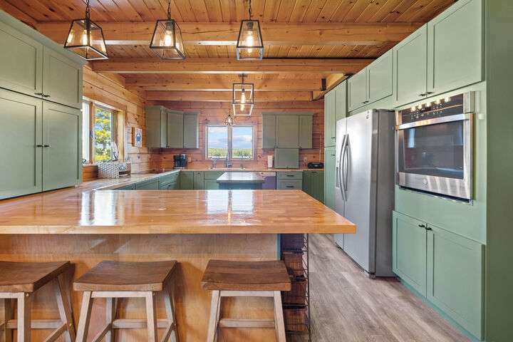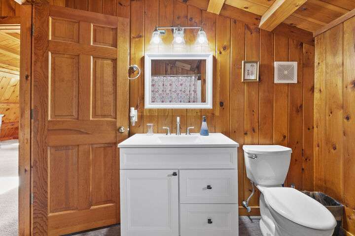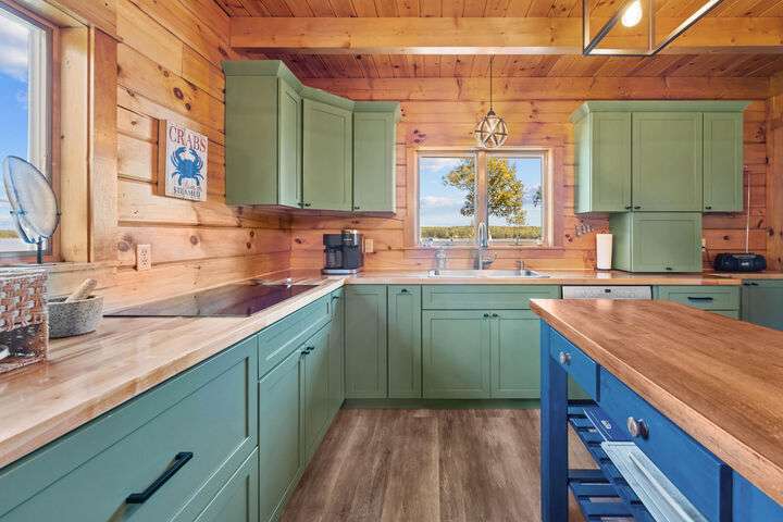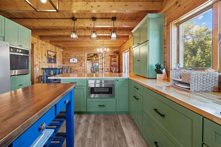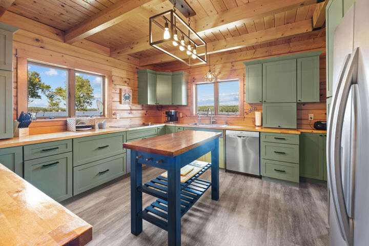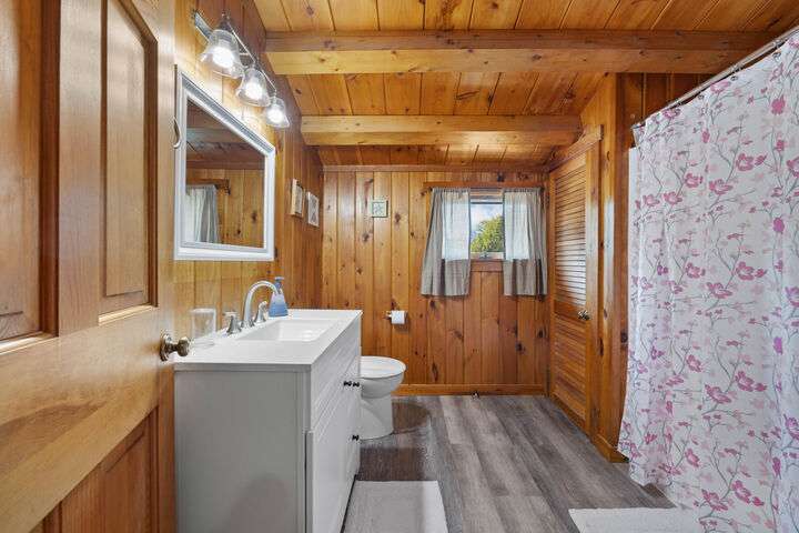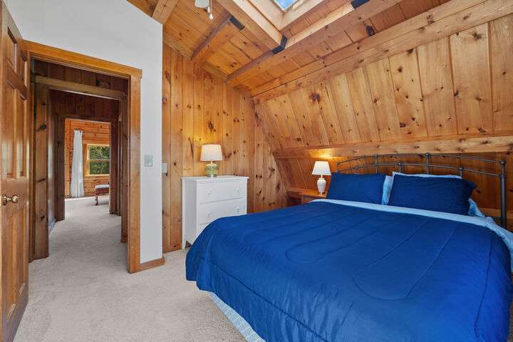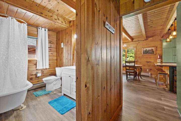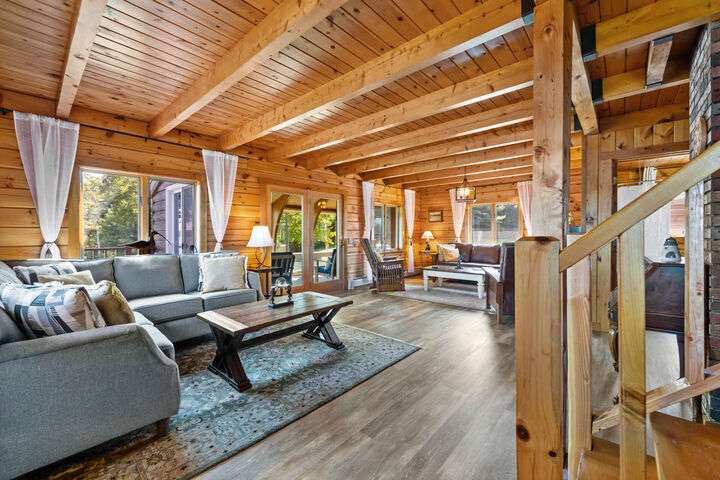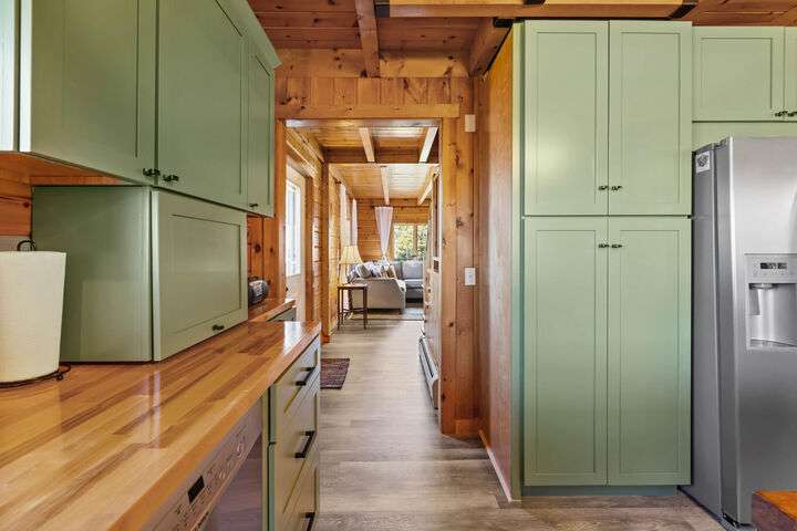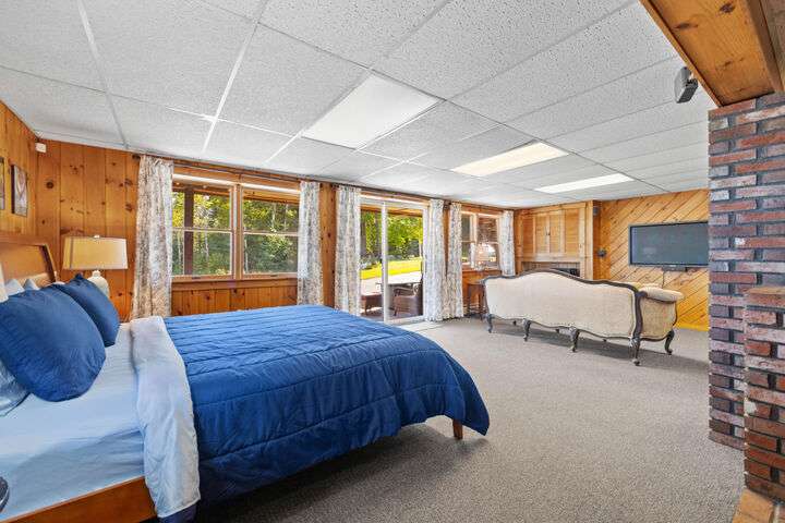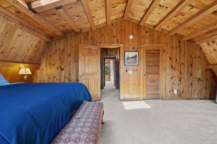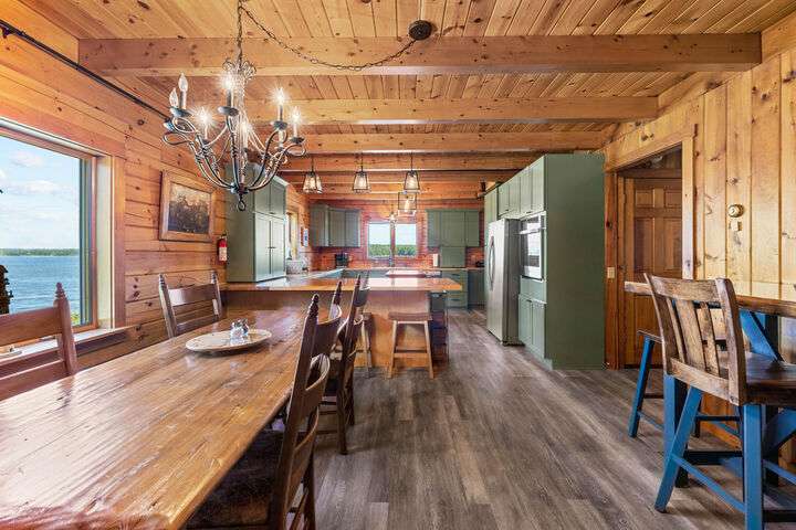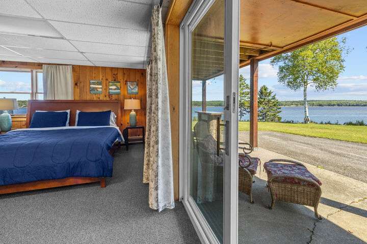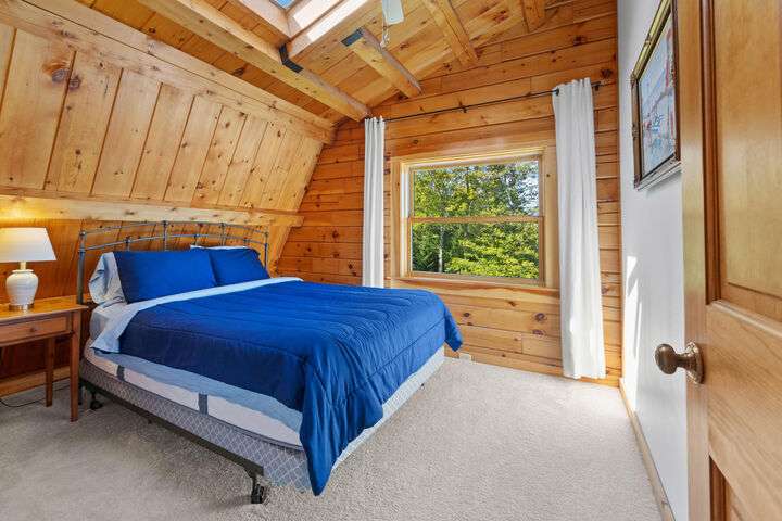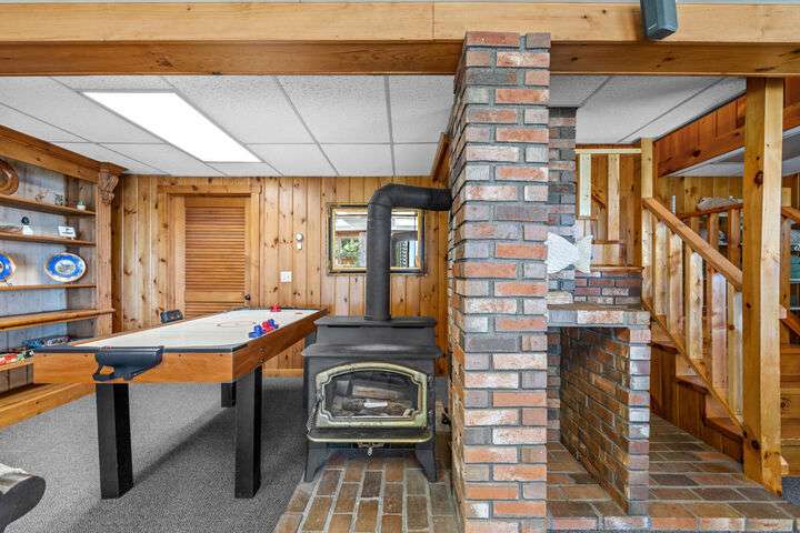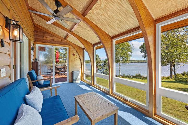 Nestled on 3+ acres with 340 feet of shoreline on Joy Bay, this post and beam log style home offers the perfect balance of rustic charm and stunning coastal views. Enjoy sweeping views of the bay from the wrap around deck or the light filled sunroom with sights of lobster boats passing by in the summer. A private stairway leads directly down to the shore for water access. Inside, the main level features a thoughtful custom kitchen and dining area, a spacious living room, a full bathroom, and sunroom that opens onto the deck. Upstairs, the second floor includes a large primary bedroom, two additional bedrooms and a full bathroom. The walkout basement adds flexible living space with a finished bonus room with a full bathroom and laundry room, offering direct access to an outdoor patio. Currently setup as a guest space and bedroom. Additional highlights include an attached two-car garage with large entryway, paved driveway, and a small charming pond tucked into the landscape. Recent improvements include the renovated kitchen, new flooring on main and second levels, and new roof shingles in 2021. Conveniently located near Gouldsboro Point Boat Launch and approximately 15 miles to Acadia National Park Schoodic Peninsula.