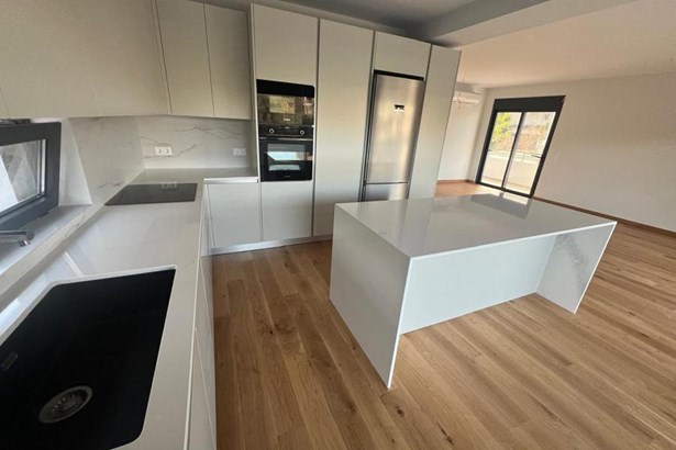 •Living Area: Open-plan kitchen with a large wooden island and all appliances