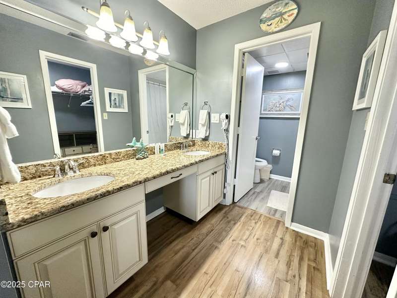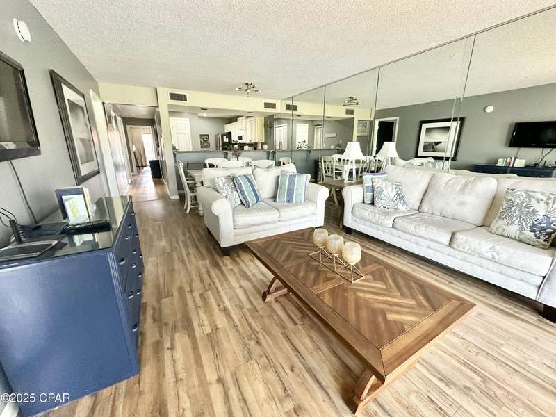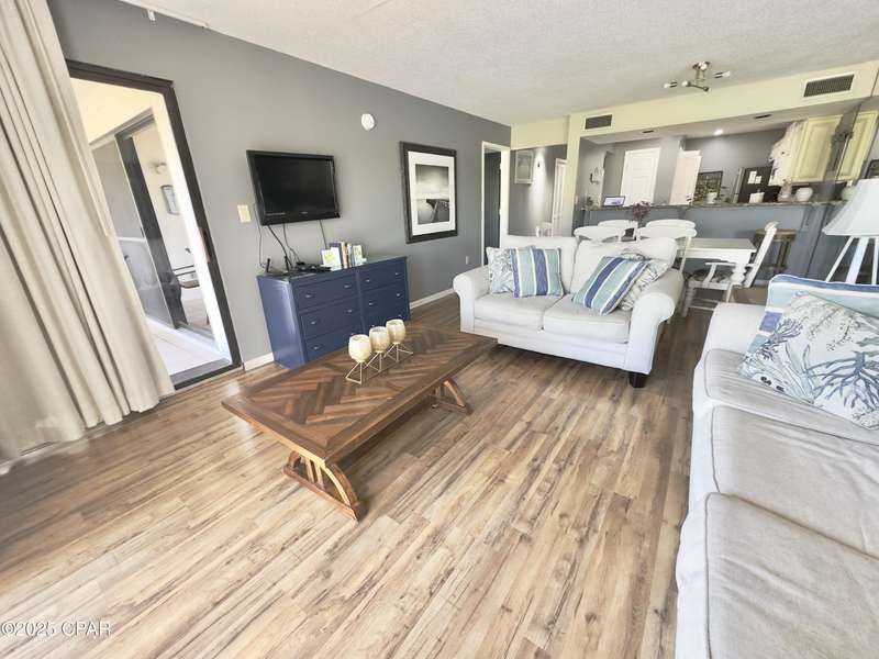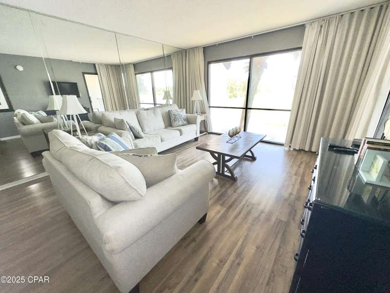 Beautiful resort-style 2 bedroom/2 bathroom condo located at the heart of Panama City Beach. Situated on the second floor for additional privacy. This turnkey and fully furnished villa is ideal for short-term vacation rental. Gross revenue over 35K in 2024. This villa offers stunning views of the golf course and access to the Gulf of Mexico. This villa offers fully equipped kitchen with all the necessary appliances and cookware, stackable laundry, and an owner's closet. The master bedroom has its own private bathroom and a walk-in closet. The guest bedroom also has its own bathroom which can be accessed from the hall way. Edgewater Resort offers a variety of amenities including a golf course, 11 swimming pools, splash pad for kids, fitness center, tennis courts, basketball, community center, conference center, private bridge to the beach access, restaurants, and so much more. All Information is deemed to be reliable, but is not guaranteed, buyer to verify if important. Schedule your private showing today!
