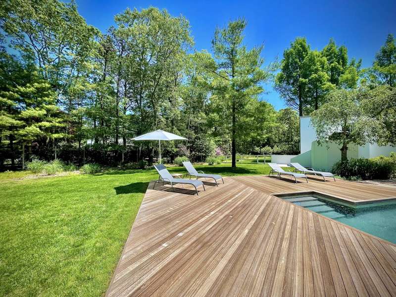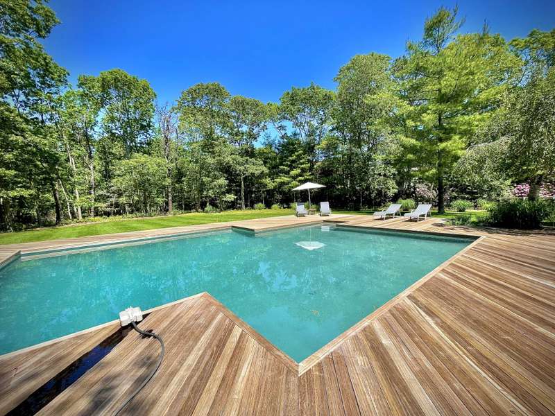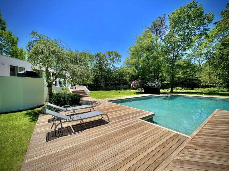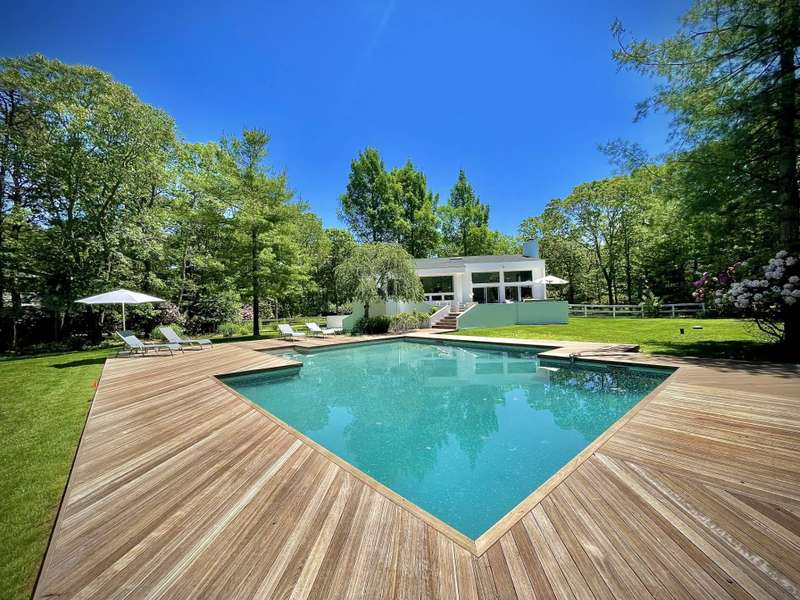 RR# 22-965. Private oasis South of the Highway in Wainscott. Completely renovated and upgraded with top-of-the-line appliances and finishes for your summer relaxing and enjoyment. Modern open concept on a cul-de-sac location, 1.2 acres of land, this beautiful, elegant house features 4 bedrooms, 3.5 bathrooms with a lower level in-suite with separate entrance. Enjoy the park-like outdoors with ample decking and seating lounge area, heated pool, close to the ocean beaches and Villages, ideal for entertainment. Available summer 2026. Other periods upon reqest. Listing ID: 844034