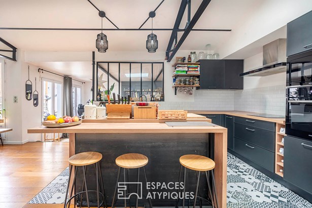 Combined with the original metal structure, glass roof and bricks, this property has a resolutely 'industrial loft' atmosphere that is very popular and sought after.