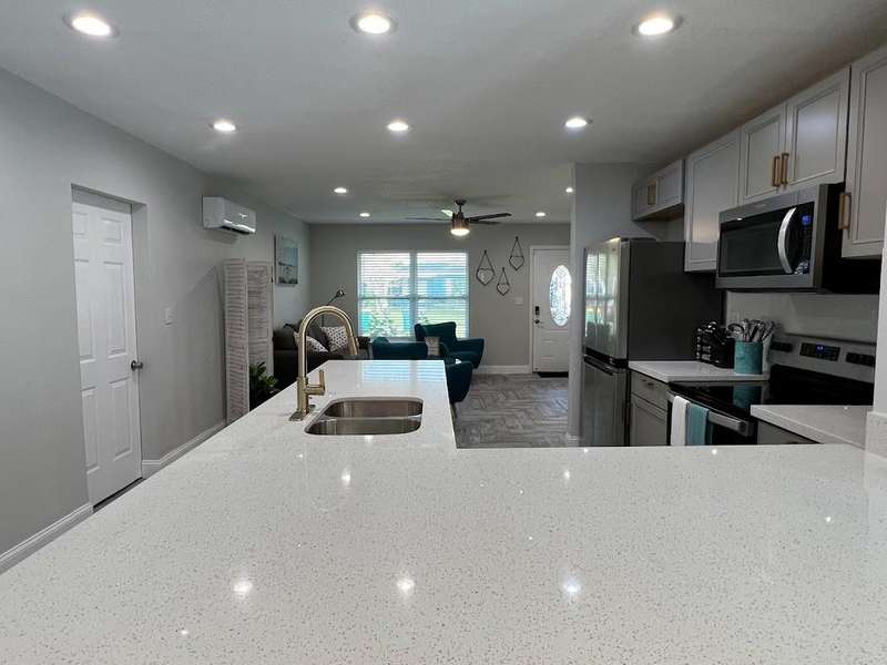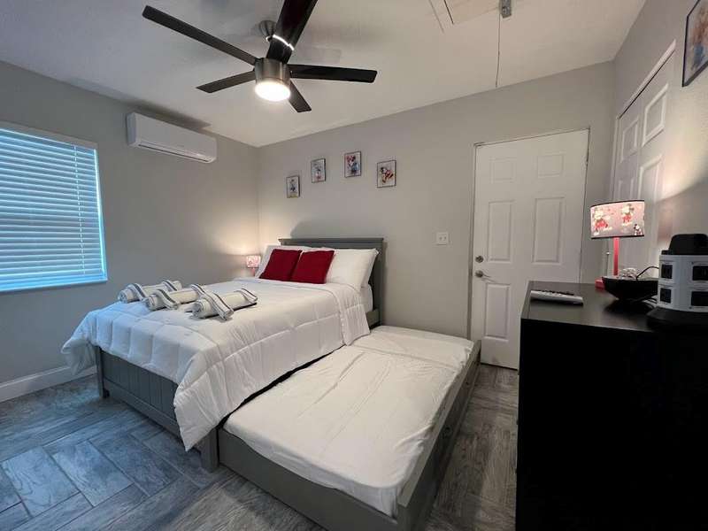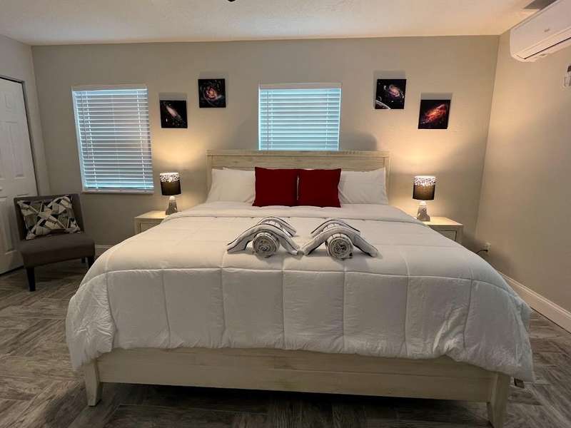 Single Family Home for rent (short term rental) minimum 3 months. All utilities included. 5 minutes away from the Melbourne Downtown. Everything inside is clean, new & ready for you. This home is located 5 minutes away from the Melbourne Airport, 5 minutes from Holmes Regional Medical Center, 8 minutes from Indialantic Beach and Canova Beach. The Patio, with new turf, is the best. You can play Soccer, Volleyball, Pickleball, Cornhole and after you can take an outside shower. VERY CLEAN PLACE. The house has 4 bedrooms and is described as Space Room, Mickey Mouse Room, Harry Potter Room and Star Wars Room, all with Galaxy sky light projector, charging station and TV with HDMI wires to connect any device. Also the house is equipped with the following: continued in supplement remarks...