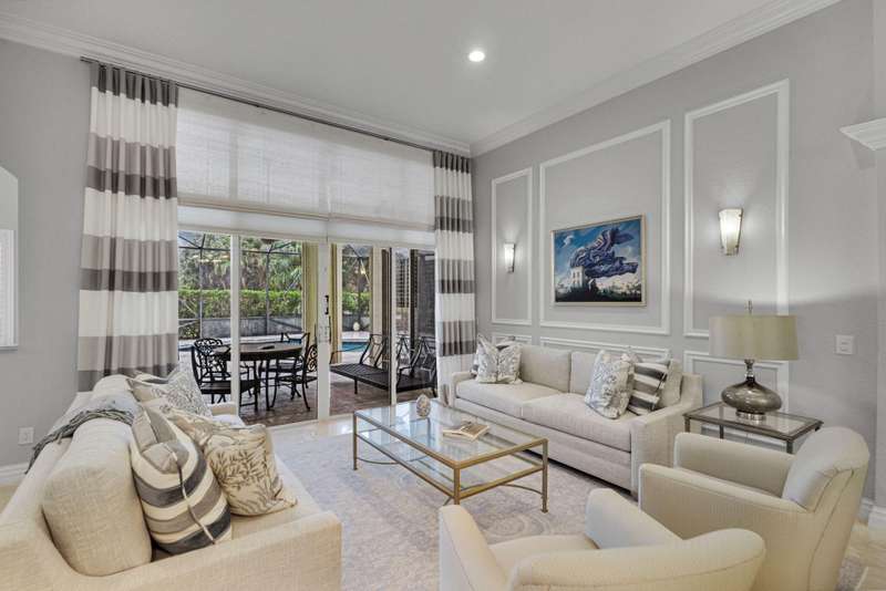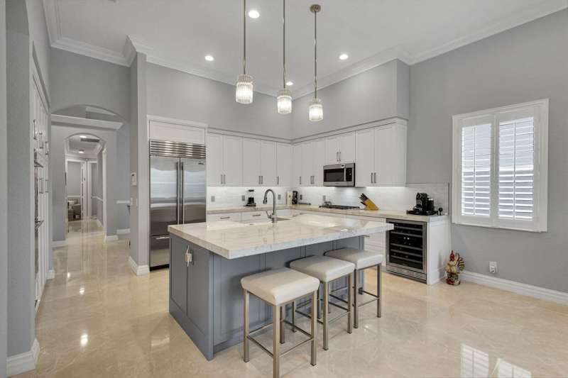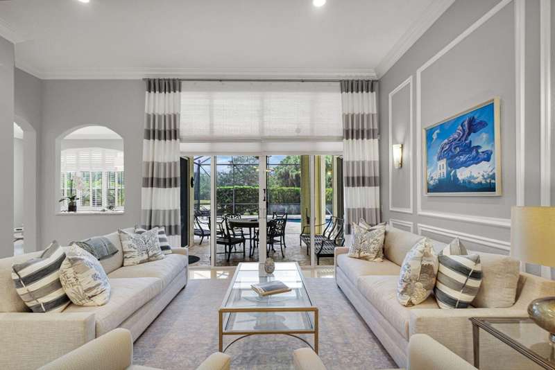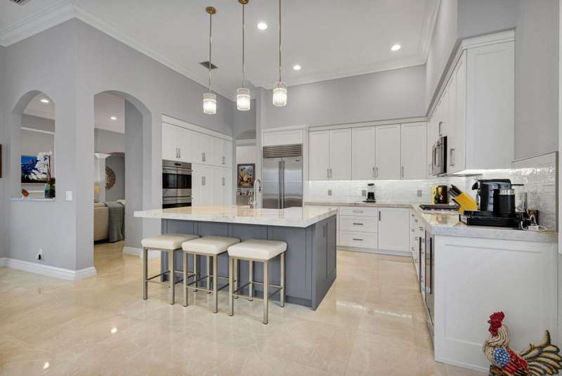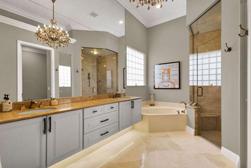 One of a Kind Palencia Model, Nicest One-Level floor-plan in Mirabella. This Home has it all. Oversized Large Lakefront Corner Lot with Screened-in Custom Pool and Spa, automated and impressive pool deck with Travertine marble, amazing outdoor space, plus a nice yard! Extensive & impressive Interior Upgrades to the entire house. Nice high ceiling and open floor plan with spacious formal areas and a large Family Room. Marble flooring & upgraded moldings throughout. Gourmet Kitchen w/ Breakfast Nook that boasts Sub-Zero refrigerator, Wolf double oven & wine cooler. Office/Den has built-in cabinets. Fabulous Master Suite with Steam Shower in Master Bath. Epoxy flooring & built-in storage closets in the Garage. One A/C replaced 1 1/2 yrs ago. Roof replaced in 2019. Clubhouse features nice...
