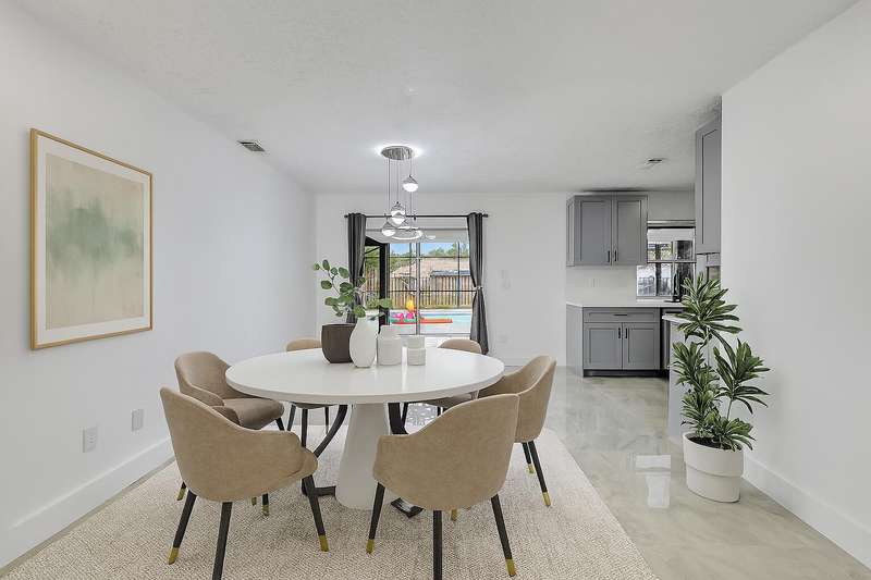 Welcome to this beautifully renovated 3-bedroom, 2-bath home tucked away on a peaceful street in Port St. Lucie. Featuring a 2024 roof, accordion hurricane shutters, and a stylishly updated kitchen, this residence offers both comfort and long-term value. The layout opens to a screen-enclosed pool area and a generously sized backyard, ideal for outdoor enjoyment and entertaining! This home is currently tenant-occupied through December 5, 2025--an excellent opportunity for investors seeking immediate rental income ($3,100/month). Advance notice required for all showings to accommodate the tenant. Split-bedroom layout, Hurricane protection throughout; Large backyard with screened-in pool; One-car garage + ample driveway space; No HOA and easy access to Highways!