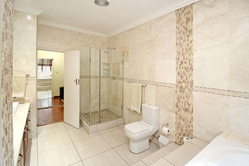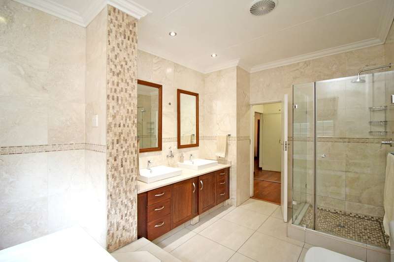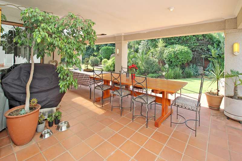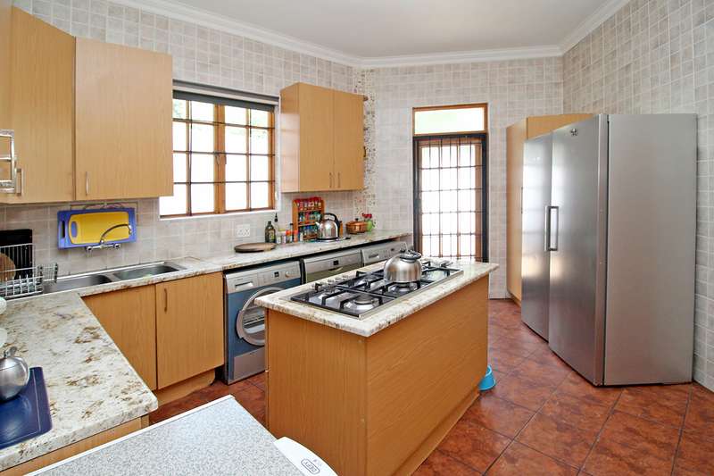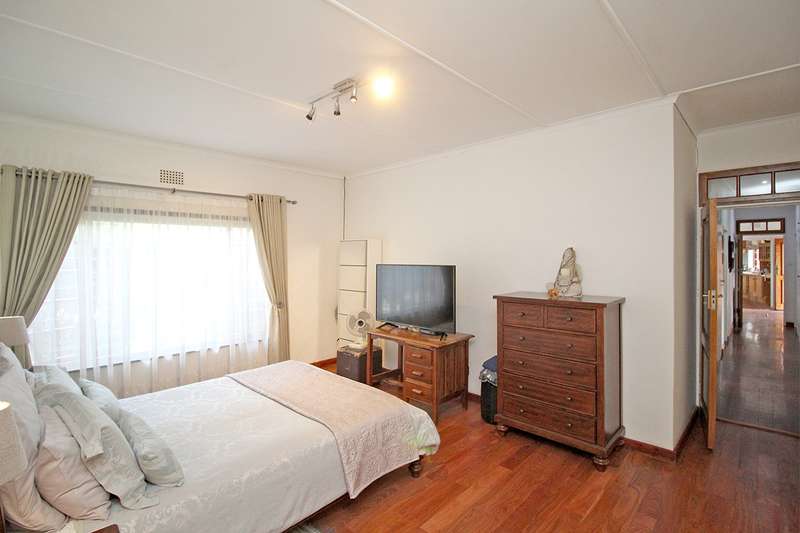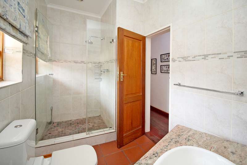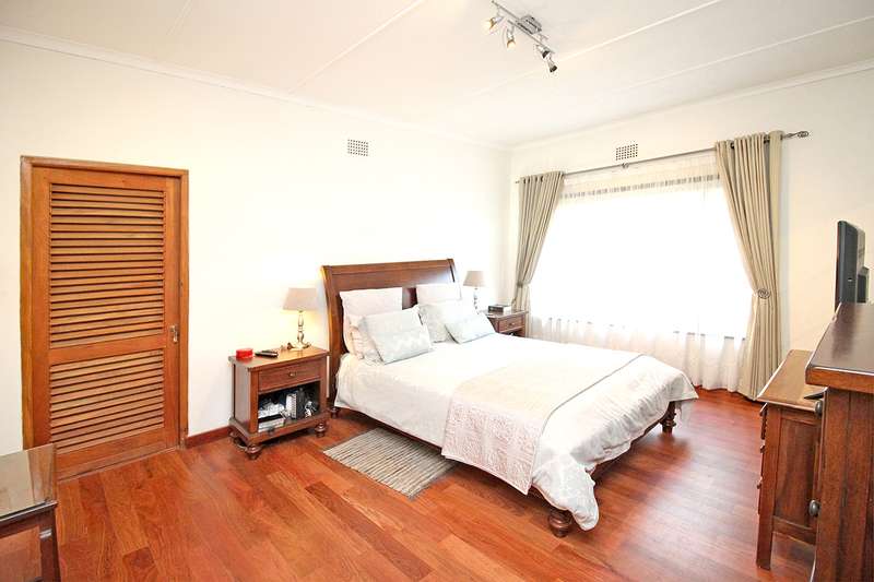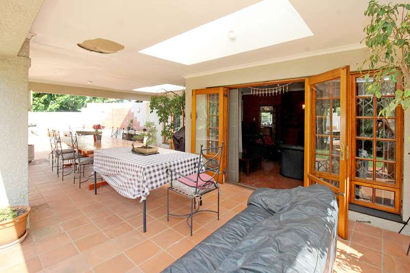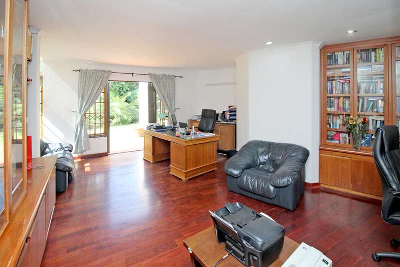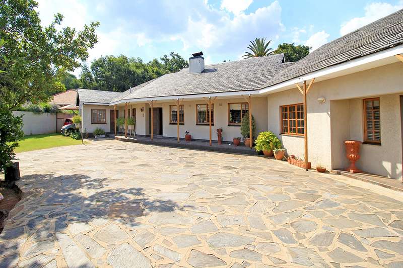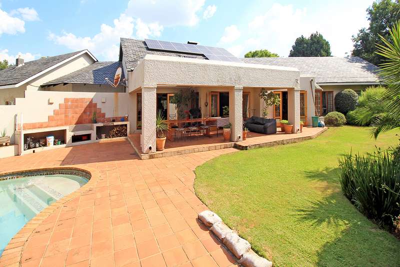 This home has it all! This is a 3/5 bed home situated on a 2325 sq stand in a lovely part of the suburb.Perfect for entertaining, spce for kids to run around and a fantastic 2 bedroomed cottage which can be incorporated into the home or kept separate with own entrance. 3 good sized bedrooms, (mes) plus 2 other bathrooms.Huge fitted study or family tv/games room opening onto the garden.Lounge (fireplace)/dining room both opening out to the covered entertainment verandah and lovely swimming pool. Good sized kitchen with elec hop and scullery laundry with gas hob. 2 bedroomed cottage with open plan lounge/dining and kitchen opens into the house but also has own entrance. Staff acc, triple garage with lock up storage and loo, double carport,plenty of off street parking, landscaped garden, gorgeous teak flooring plus excellent security and Solar system. Well situated in the suburb, close to great schools, easy access to shopping centres and highways.