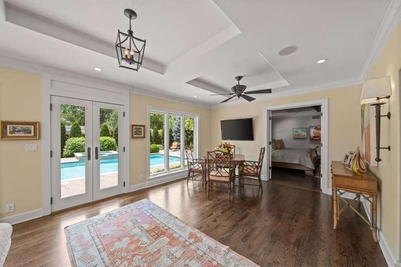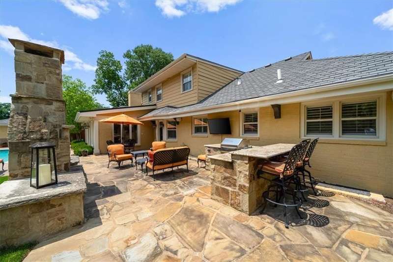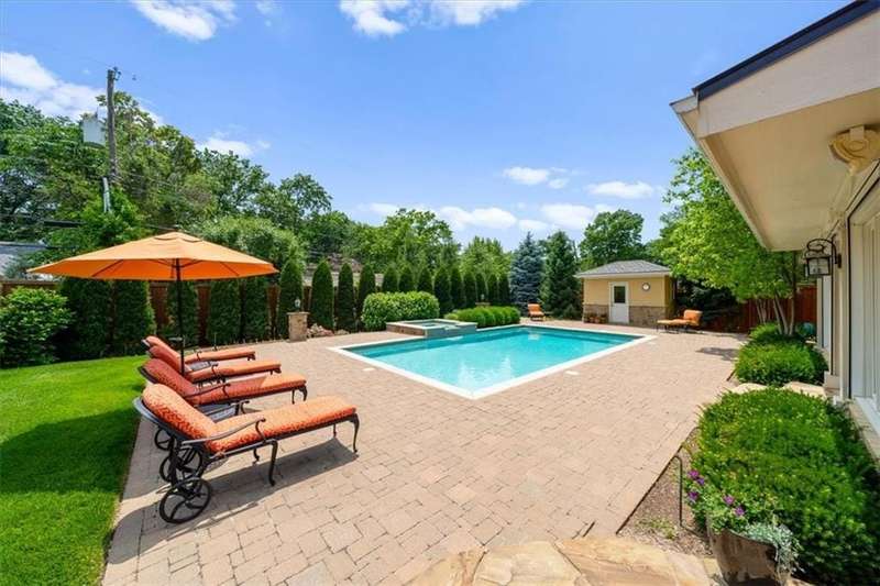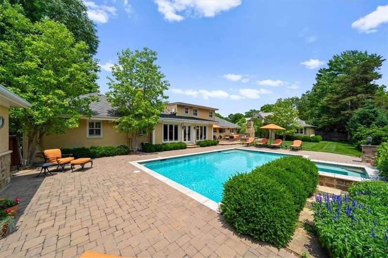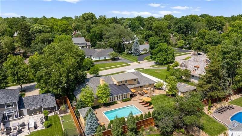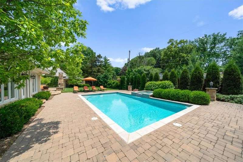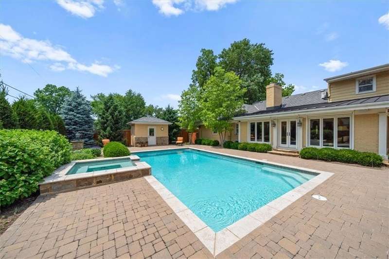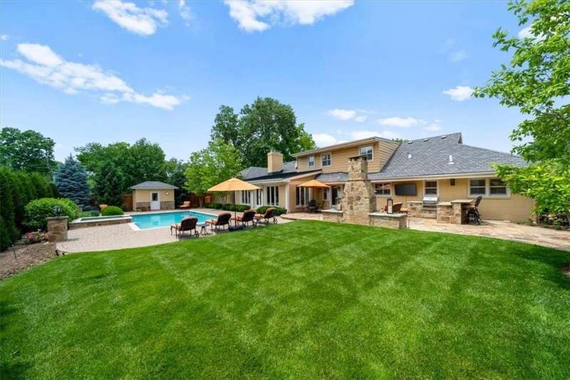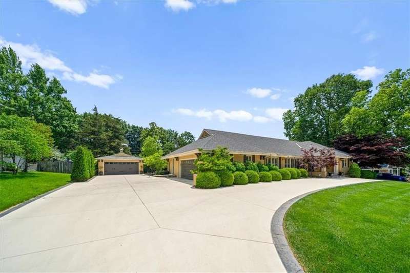 Welcome to true RESORT-STYLE LIVING in the heart of the city! Expertly renovated by premier builder Gahagan-Eddy, this home combines sophisticated design with thoughtful one-level living and exceptional spaces for entertaining. FOUR CAR GARAGE! The open floor plan flows effortlessly from the main living areas to a private backyard oasis featuring an in-ground pool, spa, outdoor kitchen, fireplace, mature landscaping and 8-foot privacy fencea true extension of the home.The chefs kitchen is a showstopper, showcasing stainless-steel high-end appliances including a gas range, a large center island, tile backsplash, and granite countertops, all surrounded by custom cabinetry that perfectly blends beauty and function. Don't miss the adjacent catering kitchen w/ double ovens, full size fridge, bar sink & storage for private prep space. The main-level primary suite is STUNNING, featuring a fully customized walk-in closet with exquisite cabinetry and craftsmanship, and an expansive spa-like bath with premium finishes. Enjoy the dual vanities, zero entry shower with glass walls, deep soaking tub set in a rich marble surround w/ built-in bench seating. Easy access to the main level laundry room from both the primary bedroom and the guest bedroom. 2nd level includes 3rd bedroom w/ ensuite full bathroom and additional storage space. Finished lower level offers newer hardwood floors, a non-conforming 4th bedroom, full bath, rec room and second laundry area. Additional highlights include a climate-controlled 750-bottle wine cellar, newer roof, circle driveway, plus 2 car attached garage AND a 2 car detached garage!