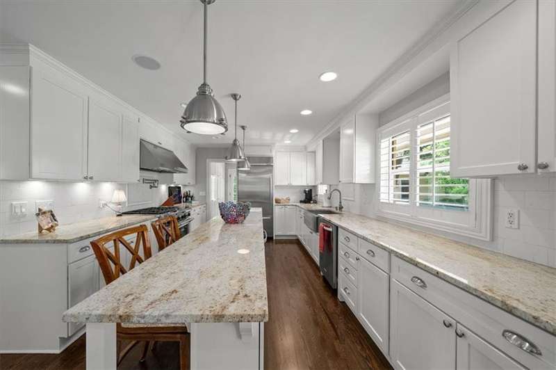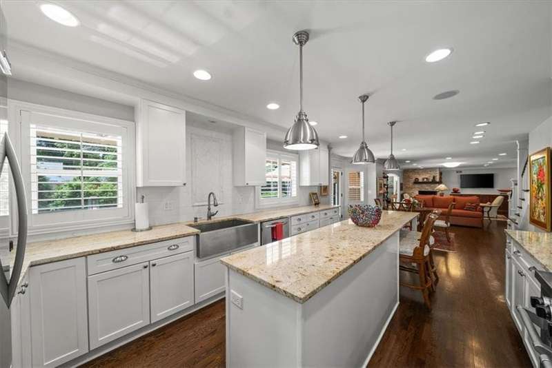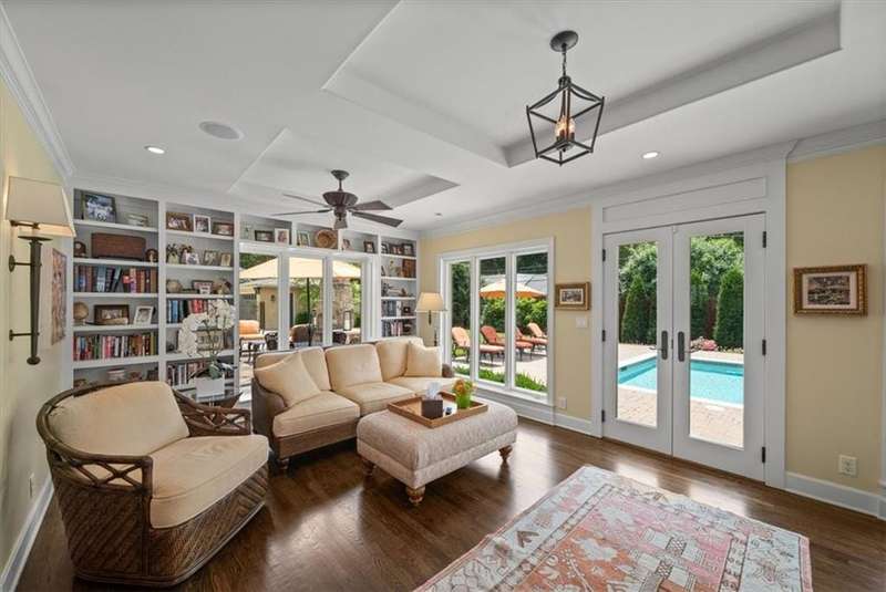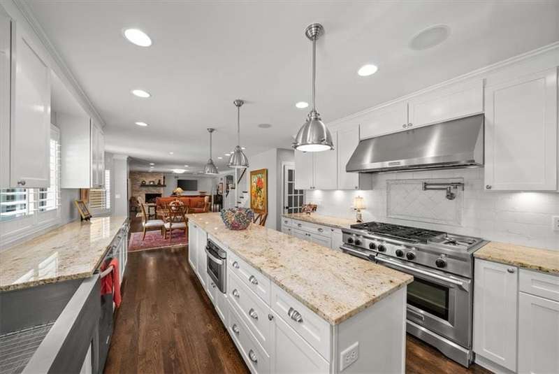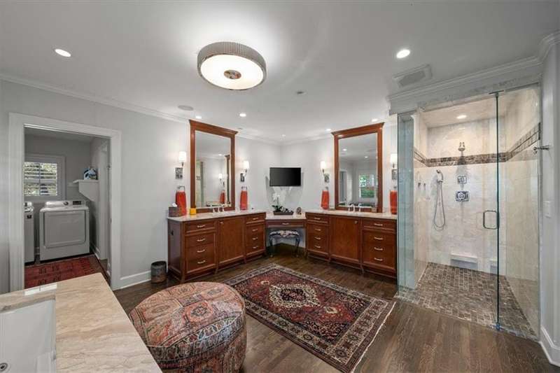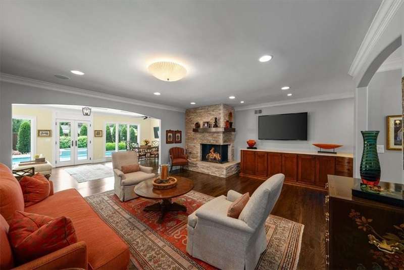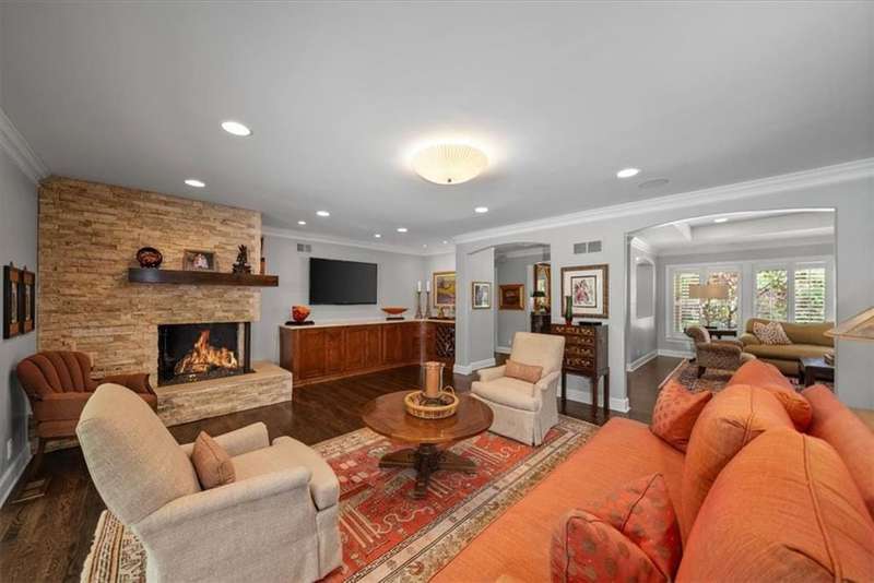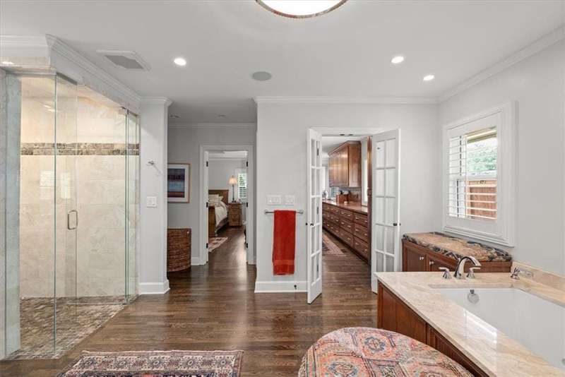 Welcome to true RESORT-STYLE LIVING in the heart of the city! Expertly renovated by premier builder Gahagan-Eddy, this home combines sophisticated design with thoughtful one-level living and exceptional spaces for entertaining. FOUR CAR GARAGE! The open floor plan flows effortlessly from the main living areas to a private backyard oasis featuring an in-ground pool, spa, outdoor kitchen, fireplace, mature landscaping and 8-foot privacy fencea true extension of the home.The chefs kitchen is a showstopper, showcasing stainless-steel high-end appliances including a gas range, a large center island, tile backsplash, and granite countertops, all surrounded by custom cabinetry that perfectly blends beauty and function. Don't miss the adjacent catering kitchen w/ double ovens, full size fridge, bar sink & storage for private prep space. The main-level primary suite is STUNNING, featuring a fully customized walk-in closet with exquisite cabinetry and craftsmanship, and an expansive spa-like bath with premium finishes. Enjoy the dual vanities, zero entry shower with glass walls, deep soaking tub set in a rich marble surround w/ built-in bench seating. Easy access to the main level laundry room from both the primary bedroom and the guest bedroom. 2nd level includes 3rd bedroom w/ ensuite full bathroom and additional storage space. Finished lower level offers newer hardwood floors, a non-conforming 4th bedroom, full bath, rec room and second laundry area. Additional highlights include a climate-controlled 750-bottle wine cellar, newer roof, circle driveway, plus 2 car attached garage AND a 2 car detached garage!