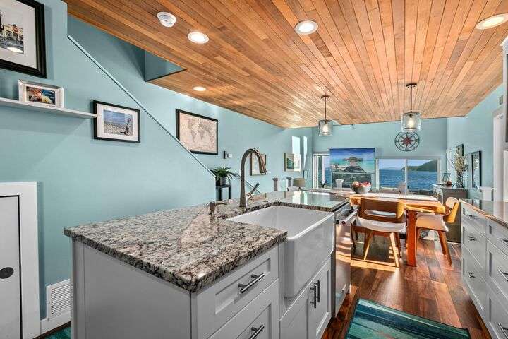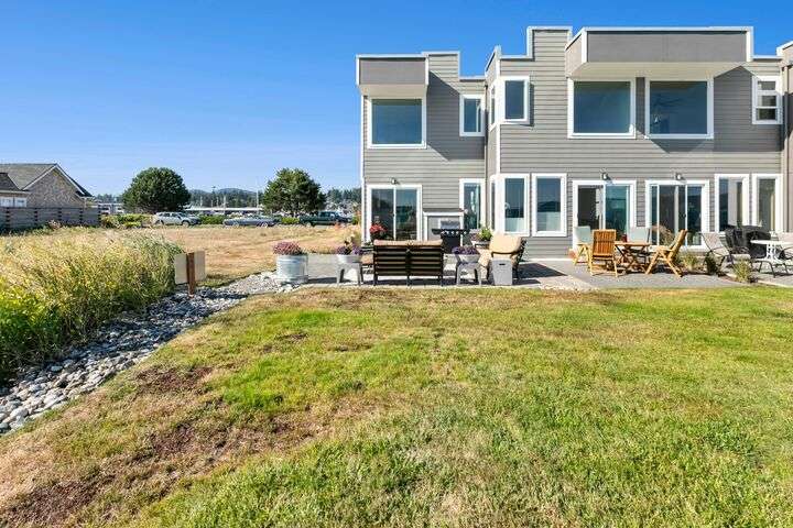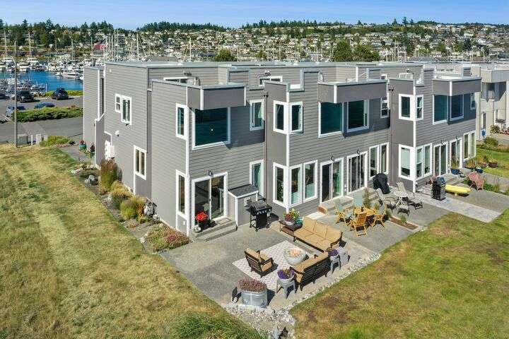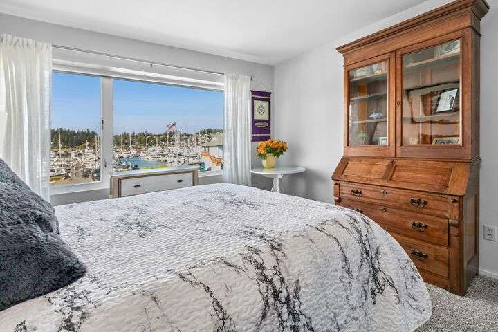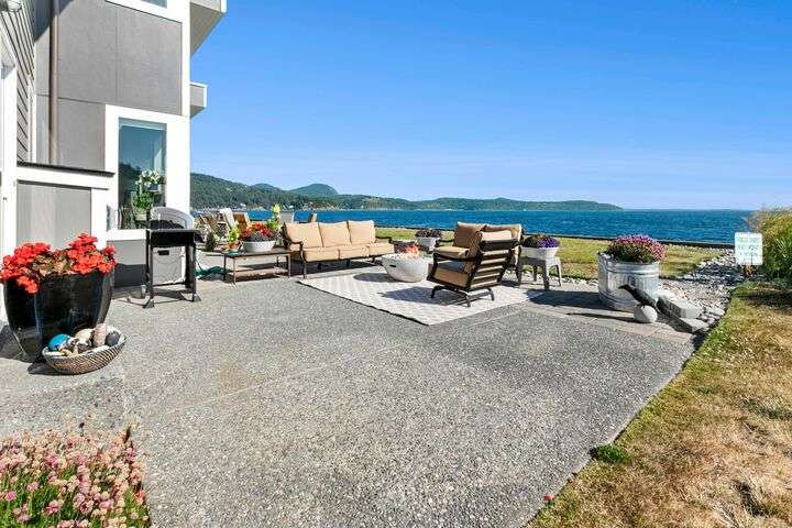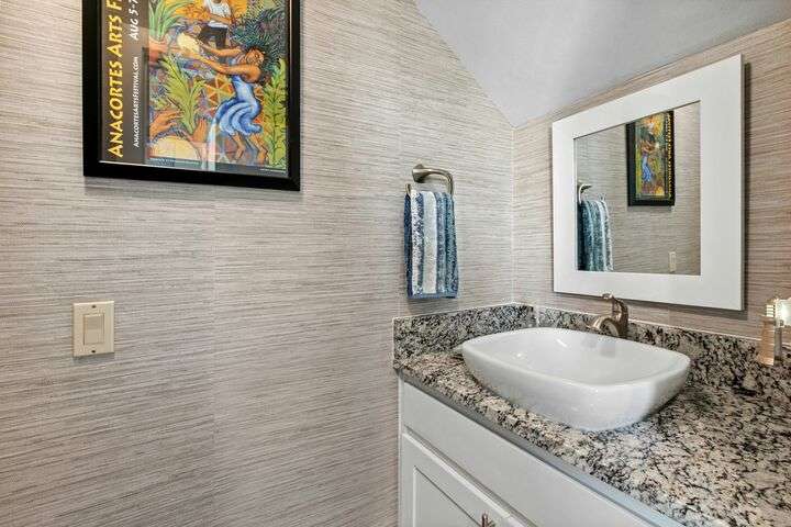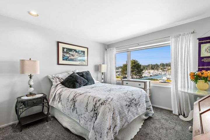 Wake up to sweeping water & marina views! Light-filled living spaces, seamless indoor-outdoor flow to your waterside patio. Inside a renovated culinary kitchen; sleek granite, crisp white cabinets, wood floors & ceilings, perfectly paired with beach glass paint schemes.The powder on the main; seagrass walls & modern fixtures. The dining sits above the great room for optimal views. Primary suite is a resplendent space for rest-relaxation & tranquil sounds from water lapping below. Another ensuite with captivating marina views. Private beach access New siding, garage door & windows! Easy, self managed HOA. Best of the Fidalgo Island waterfront living with Skyline amenities; marina accessibility, 220 acres in WA Park, ferry terminal nearby.
