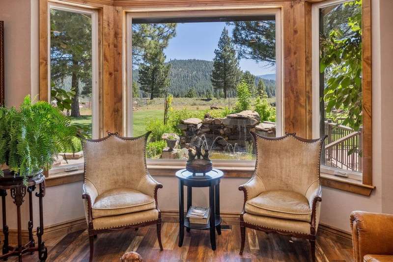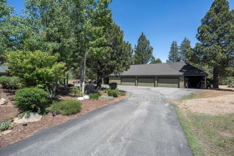 Exceptional 28+ Acre Estate with Breathtaking Views! Discover the unparalleled beauty of this private and secluded estate, offering priceless views that captivate the senses. Designed on a grand scale while maintaining an intimate and inviting atmosphere, this residence boasts panoramic vistas of meadows and mountains from nearly every room. Experience the ultimate in privacy, all while being just minutes away from the historic charm of Truckee, world-class skiing, and stunning lakes and reservoirs. The main home is a true entertainer's paradise, providing ample space for gatherings and celebrations. It features a remarkable kitchen, a dramatic great room, a formal dining area, a dedicated home office, two master suites, and three guest rooms. The expansive back deck is perfectly suited for entertaining, complete with a built-in BBQ and kitchen area. Additional highlights of this estate include a striking water feature, an outdoor bathhouse, RV hookups, a garden shed, and an impressive detached workshop/garage—ideal for storing all your Tahoe recreational equipment. This property is a rare gem, combining luxury, comfort, and an idyllic natural setting. Buyers consider joining nearby Tahoe Mountain Clubs award winning amenities, for a membership to fit your lifestyle - pools, golf courses, tennis, pickleball, gyms and a private ski in and out venue at Northstar Ski Resort.
