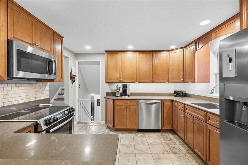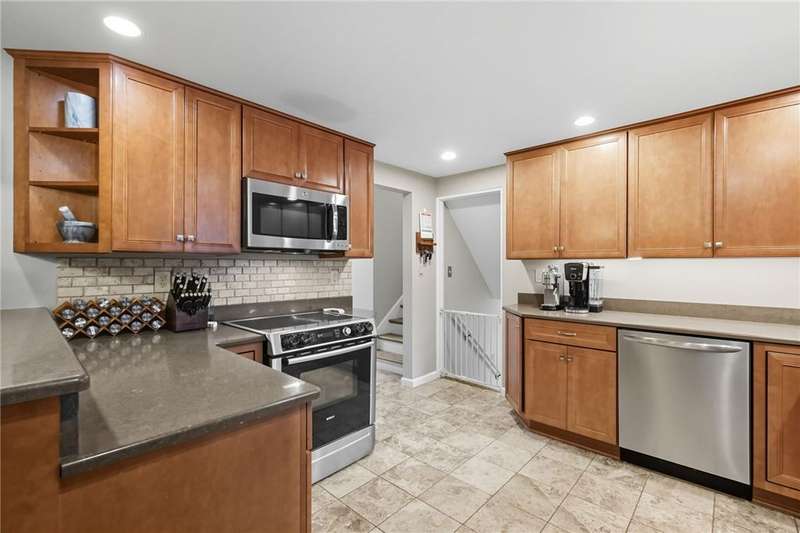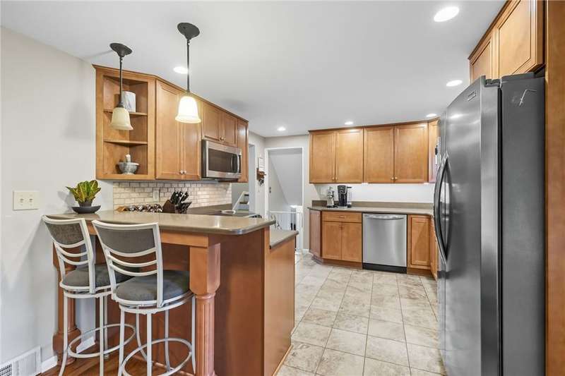 Step inside this pretty Multi Level home that has a combination of classic craftmanship and modern versatility. The sun-splashed living room with gleaming hard wood floors is open to the cozy dining room with direct access to the updated kitchen-complete with warm cabinetry, quartz counters and stainless appliances. This home's flexible floor plan can be tailored to your needs with 3 spacious bedrooms upstairs that include a primary bedroom with ensuite bath. An updated main bath completes the upstairs. Step down to the remodeled laundry room and an additional room that can easily serve as a fourth bedroom or home office. Step down to a spacious lower level gamer room and you can walk right out to the rear yard through the back door. Lot of great outdoor living space that includes a breezy rear deck overlooking a nice back and side yard. Great location! A block from Hoover Elementary, close to public transportation and St. Clair Hospital. Short drive to I79, shopping & restaurants.