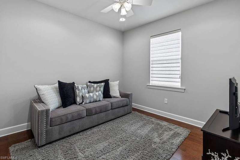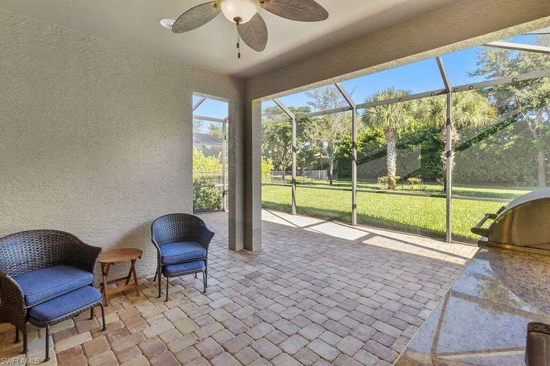 Annual Rental Available NOW! First Month & Security Deposit ONLY! Fully Furnished. Experience the very best of Naples and Southwest Florida living in this beautifully and meticulously kept 3 bedroom plus Den and 2 full bath single family home in the highly sought after gated community of Camden Lakes in centrally located North Naples. Nearly 2,000 Sq Ft of living Space. Step inside from the warm Florida sun into the foyer and you are greeted by the first bedroom to the right with the kitchen and living area straight ahead. The kitchen enjoys granite counters, a GAS stovetop, center island, coffee bar, stainless steel appliances, disposal, and pantry. Entertaining guests is a breeze with great flow from the kitchen to the living area and the enclosed lanai through the sliding glass doors. The enclosed lanai enjoys Northern exposure and has plentiful natural light. Your primary bedroom features a double vanity, water closet, large walk-in closet, and separate shower and tub. The remaining guest bedroom has plentiful storage and space for your out of town guests. Peace of mind is enhanced with your 2 car garage, laundry in residence, laundry tub, and close proximity to the Clubhouse and community pool. Camden Lakes residents enjoy the clubhouse with the exercise room, community pool, basketball court, outdoor grilling, and club room. Situated North of Immokalee Rd off Livingston Rd, you are mere moments from shopping and dining at Seed To Table, Mercato, and Downtown Bonita Springs. You can have toes in the sand at famed Naples beaches within 15 minutes. Enjoy this exquisite lifestyle with an exceptional A+ rated school system!