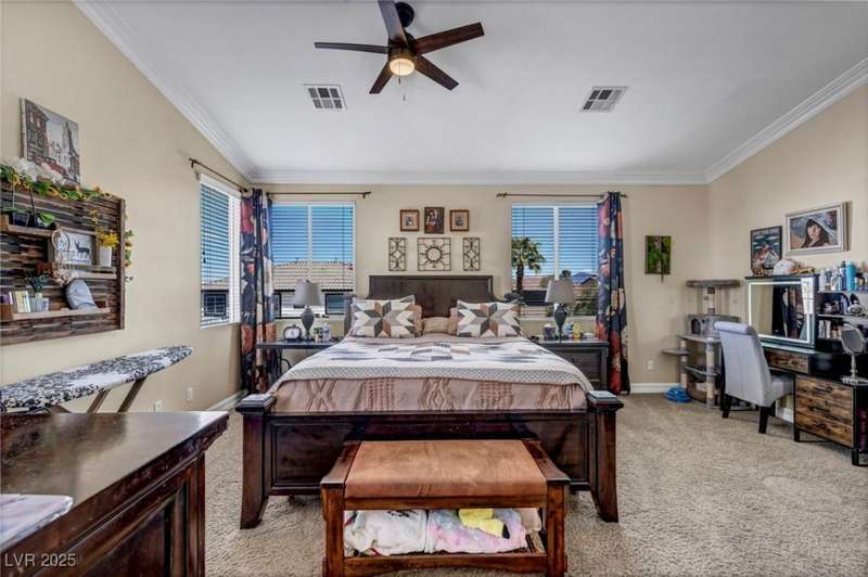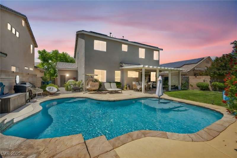 Welcome to your future home with room to grow?literally! This spacious two-story house offers 6 bedrooms and 3 bathrooms across 3,004 square feet of well-designed living space. Sitting on a sizable lot, there's plenty of room for both play and privacy in the backyard, making it perfect for outdoor entertaining or your dream garden. Inside, enjoy a flow that balances open living with private retreats, including a generous primary bedroom that's ready to become your sanctuary. Quality craftsmanship is evident throughout the build, offering peace of mind as you settle in. Located in a peaceful neighborhood near parks like Somerset Hills and Goett Family Park, there's something for everyone?from furry companions at Cactus Jones Dog Park to teens attending Desert Oasis High School. Need a night out? The South Point Casino and Hotel is just minutes away. Whether it's quiet weekends or fun-filled evenings, this home delivers space, comfort, and convenience in one stylish package.
