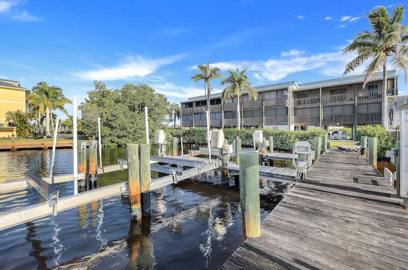 Wonderful views from this furnished 2 bedroom, 2 bath condo with deeded dock and electric lift on Lake Placid, community swimming pool and boat lift, 2 covered parking spaces, storage downstairs, washer, dryer, tin roof, centrally located, walking distance to groceries, restaurants.
