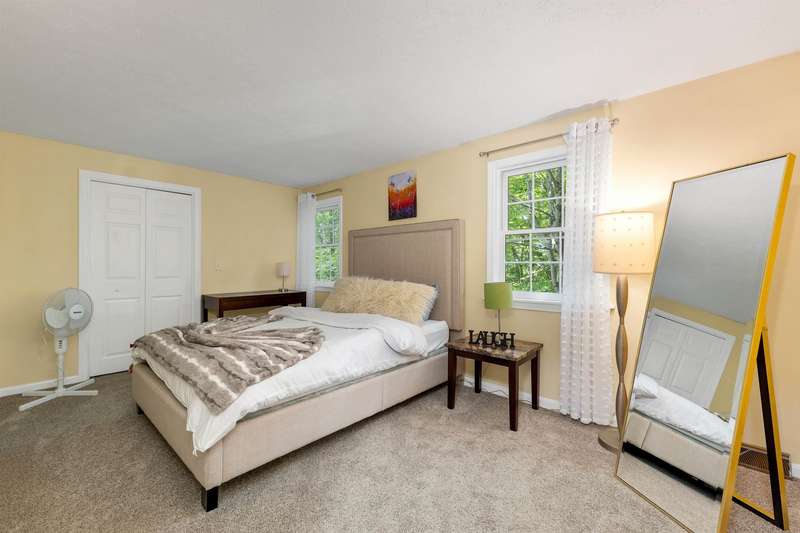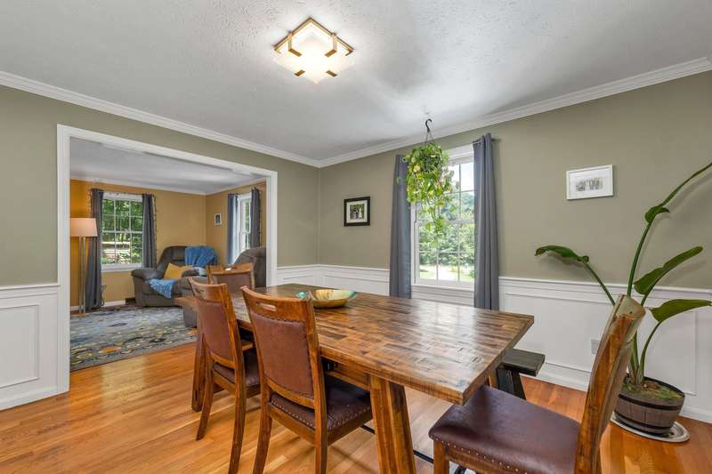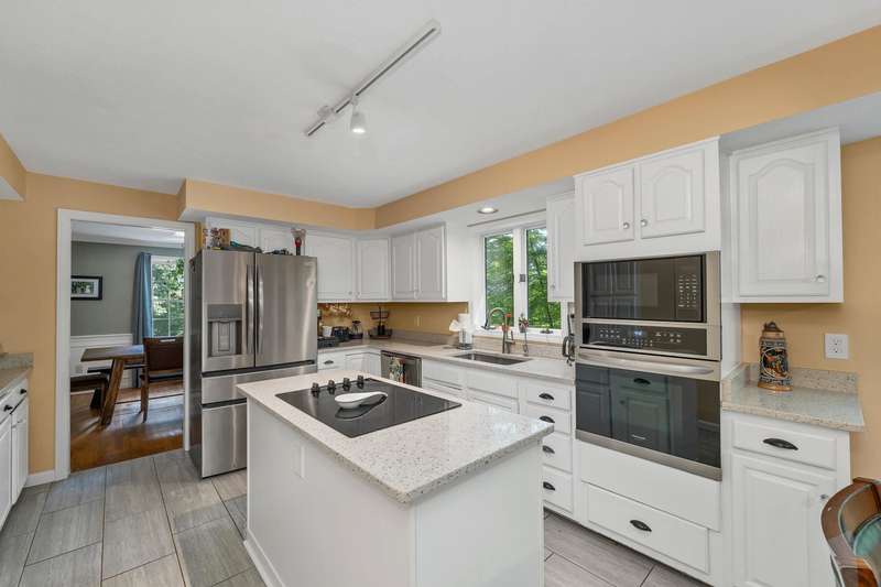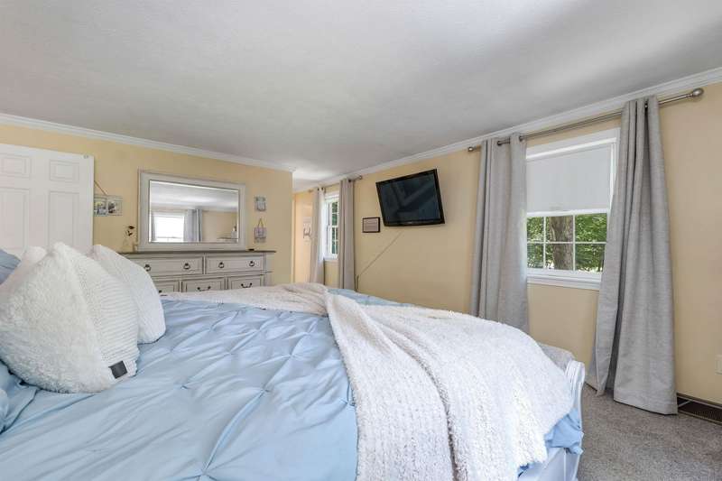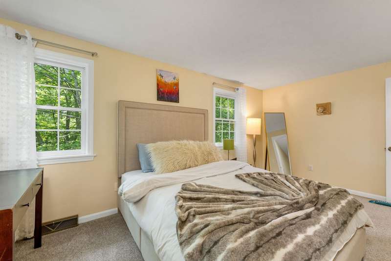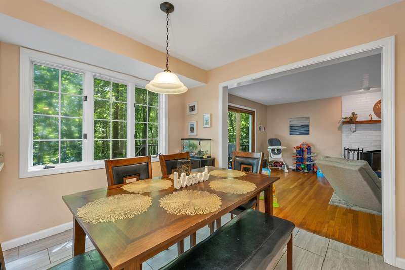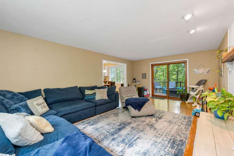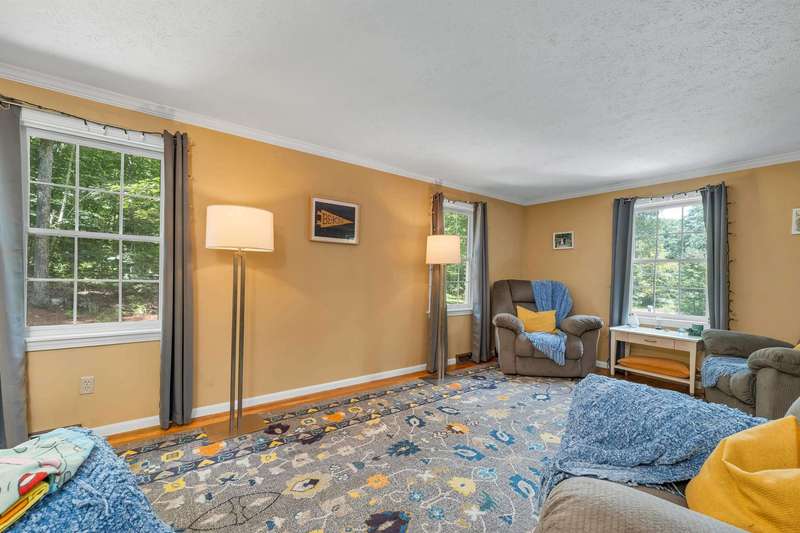 Nestled on over 2 acres surrounded by serene conservation land, this private 4-bedroom colonial offers an ideal retreat in a sought-after neighborhood. Tucked away in a peaceful cul-de-sac yet conveniently close to the vibrant village of Hollis, this home combines tranquility with accessibility. The heart of the home features a cozy family room with a fireplace, perfect for gatherings and relaxation. The spacious eat-in kitchen boasts stainless steel appliances and ample storage, catering to both everyday meals and entertaining. A formal living room and dining room provide additional rooms for hosting guests or enjoying quiet moments. Upstairs, the Primary Suite includes its own bath for privacy and comfort, while three additional bedrooms offer plenty of space or options for a home office. The finished basement provides extra living or a recreational area, ideal for hobbies or play. Outside, stone walls and a large yard enhance the property's charm and usability, creating opportunities for outdoor activities and gardening. This meticulously maintained home combines modern amenities with classic colonial charm, offering a rare opportunity to enjoy both privacy and community in a desirable location. Walking distance to Primary and Elementary schools, downtown Hollis where you'll find Brookdale, Lulll Farm and all additional charming places that Hollis Village has to offer. Skiing and Hiking Trails on the property. This home has it all!