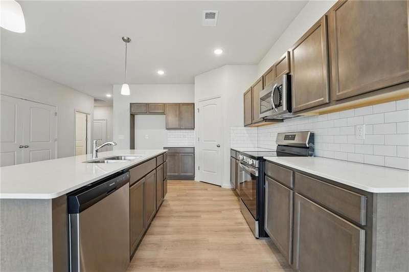 Discover the perfect blend of modern design and comfort in The Harrington by Ashlar Homes. This stunning 4-bedroom, 2.5-bath home features an inviting open-concept layout, ideal for entertaining and a 3 CAR Garage. The beautifully designed kitchen boasts quartz countertops, a stylish backsplash, and stainless steel appliances, making it a chef's dream. With spacious bedrooms and elegant finishes throughout, this home offers both luxury and functionality. Don't miss your chance to own this exceptional home!