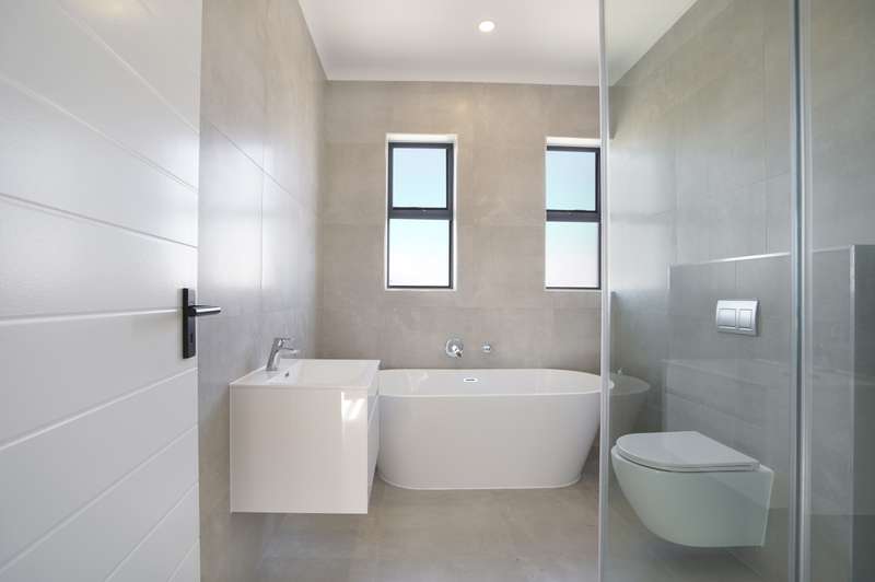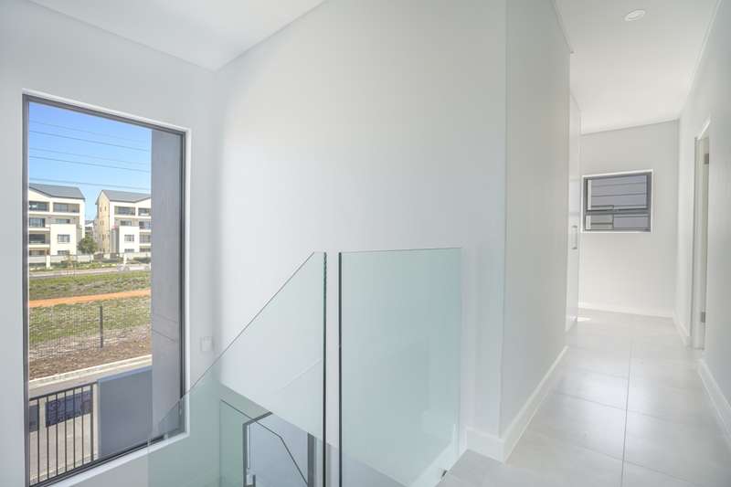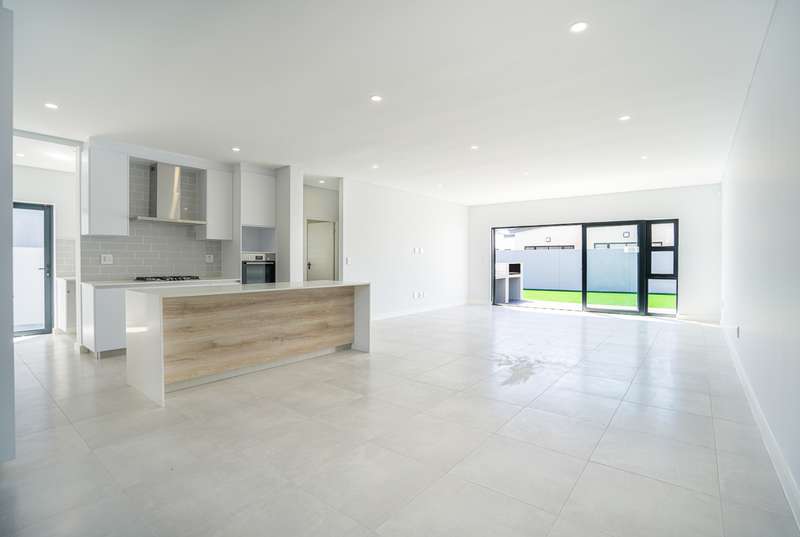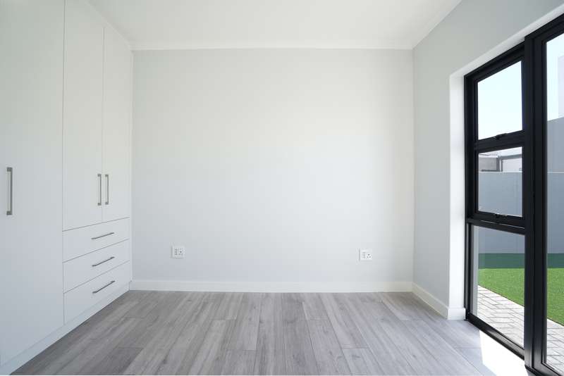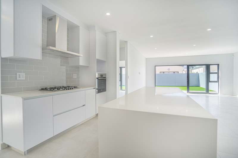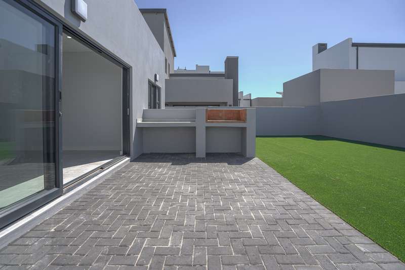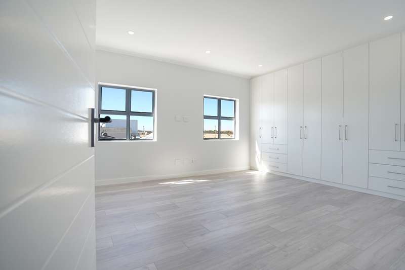 Spacious, Stylish Family Home with Pool and Entertainer’s Patio. No transfer costs! This stunning double-storey, 4-bedroom, 3-bathroom home is perfectly designed for comfort, convenience, and effortless entertaining. Step inside to find light-filled living spaces complemented by sleek laminate flooring in the bedrooms, creating a warm and inviting atmosphere. The open-plan kitchen boasts a separate scullery, ensuring a clutter-free cooking experience. Ideal for multi-generational living or guests, the fourth bedroom is located downstairs, serviced by a full bathroom. Upstairs, the main suite is a private retreat, complete with its own en-suite bathroom, while the additional two bedrooms offer ample space for the whole family and are also serviced by a shared bathroom. Outside, the paved patio with a built-in braai and countertop is perfect for weekend gatherings, overlooking a sparkling swimming pool and a level yard—ideal for kids and pets to enjoy. A double garage and paved driveway provide ample parking, while a convenient store room under the stairs adds additional storage space. This design perfectly blends style, space, and functionality—don’t miss the opportunity to make it your own! Our plans are fully customizable, allowing you to choose your ideal finishes. Contact us today to see what plots are still available !