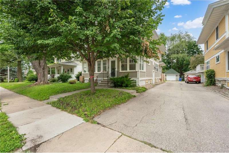 This charming two-story home blends beautiful historic details with modern updates just minutes from the Mayo Clinic and downtown. Original woodwork, stained glass windows, and hardwood floors give the home timeless character, while the functional layout provides space for a modern lifestyle. The main floor features a bright kitchen with stainless appliances, formal dining, living room, and half bath. Upstairs you'll find three spacious bedrooms, including a primary suite with walk-in closet and private ¾ bath, plus a full hall bathroom. A finished third-floor bonus room offers space for an office, guest room or playroom. The basement adds a cozy family room with gas fireplace, laundry, and a rough-in for an additional bath. Enjoy the fully fenced backyard with its beautiful perennial flowers from the deck or relax on the enclosed front porch. Includes a 1-car garage with attached garden shed. New washer/dryer and basement carpet this year. This home has been pre inspected for peace of mind.