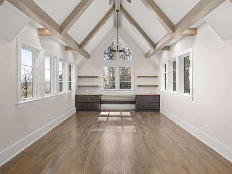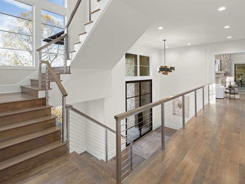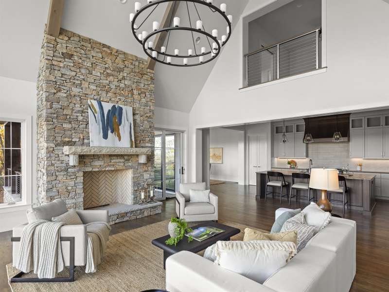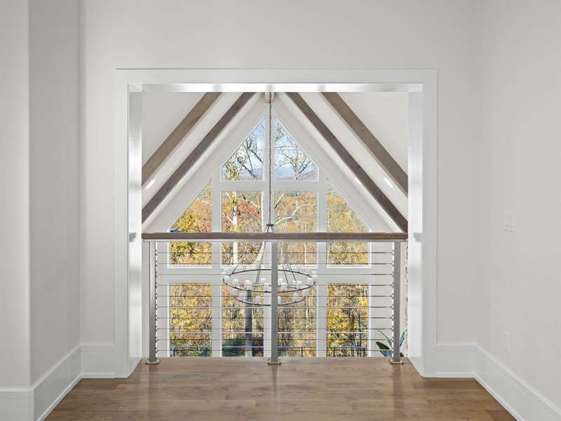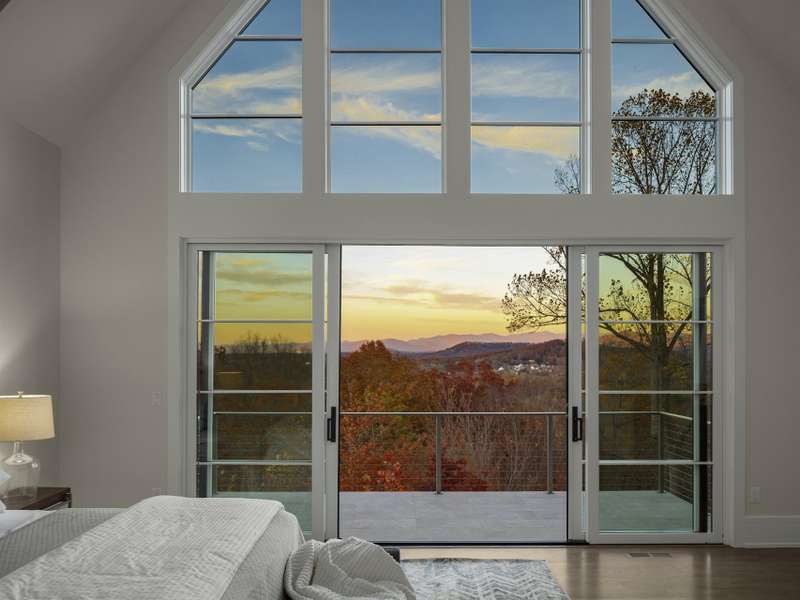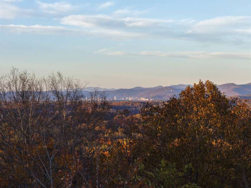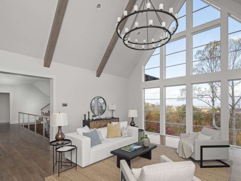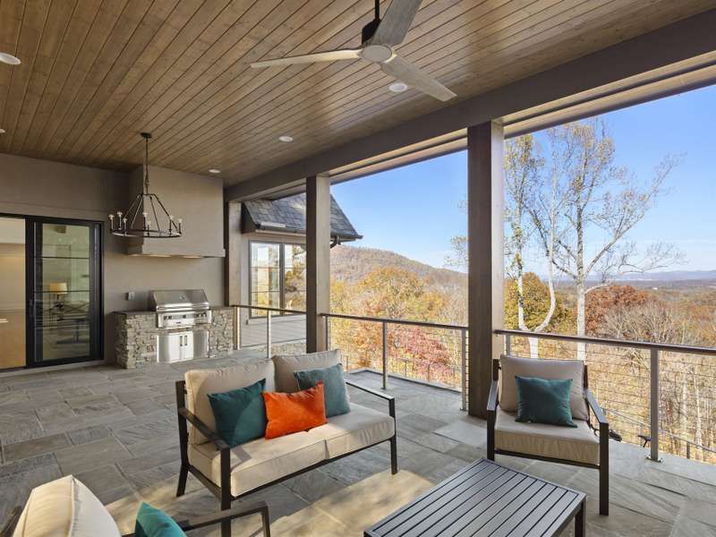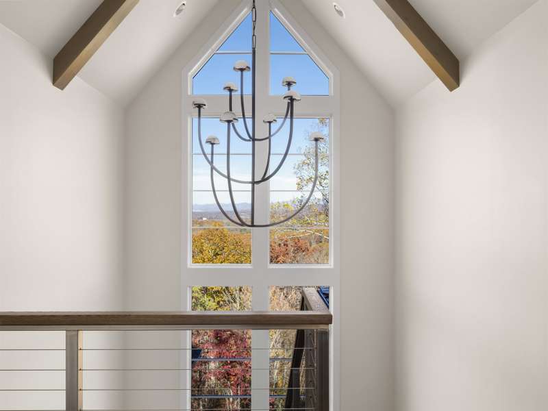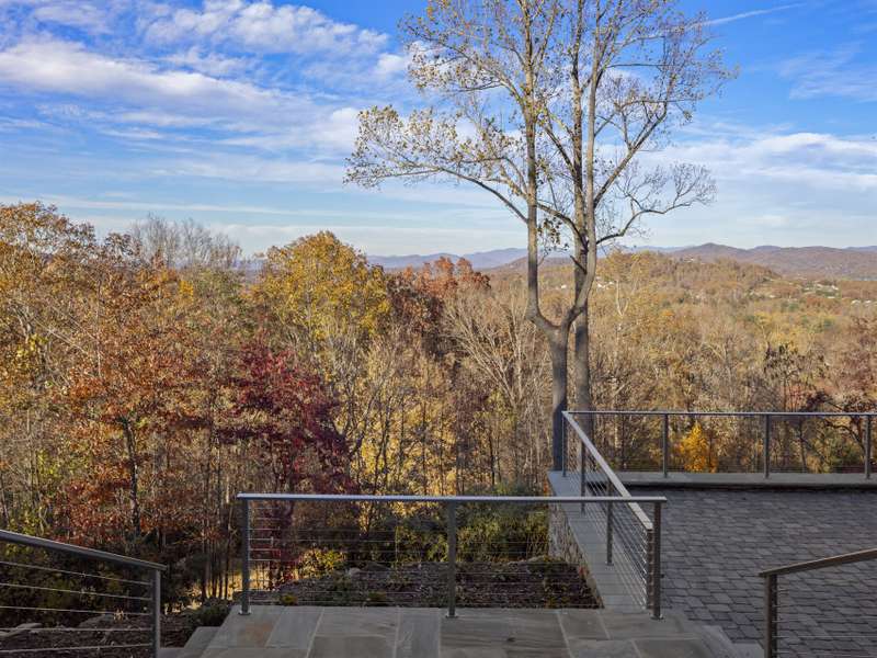 Perched on one of the highest ridges in Walnut Cove, this brand-new 2025 modern mountain masterpiece delivers the rarest commodity in Western North Carolina: unobstructed, 180-degree panoramic views that stretch from the glowing skyline of downtown Asheville all the way to the ancient spine of the Blue Ridge. On a clear day you can pick out the spire of the Jackson Building and the neon glow of the Battery Park Hotel at twilight. In fall, the entire valley ignites in crimson and gold, framing the city like a living postcard. In winter, the lights of Asheville shimmer below while snow dusts the distant peaks. This is not a view; it's a front-row seat to the seasons.Step inside and the drama continues. Soaring gable windows flood the open great room with natural light, framing the stone fireplace that rises like a sculptural monument. White-oak beams float overhead, and wide-plank European oak floors flow seamlessly to the expansive glass doors, merging the interior with the large covered veranda. A second outdoor fireplace and built in grill make this space usable for morning coffee with the sunrise over Pisgah or evening cocktails as the city lights flicker on below.The heart of the home is a chef's kitchen that belongs in a design magazine. Custom cabinetry climbs to the ceiling, complemented by a massive island with seating and additional storage. A full appliance suite, and a massive walk-in pantry make entertaining effortless.The primary suite is a private retreat on the main level, opening directly to a private terrace and those endless views. Two walk-in closets, and a spa bath with freestanding soaking tub and private laundry create a sanctuary you'll never want to leave.Upstairs, a generous guest suite and bonus room/office each claim their own wing, sharing a lofted space overlooking the great room. Descend the floating staircase (or take the elevator) to the lower level, where entertainment reaches new heights. A bonus room with wet bar can be a theater, game room, or gym. Two guest suites with en-suite baths, lots of storage, and a massive 3-car garage with additional storage and workshop area.Outside, native stone walls cascade down the hillside, blending the architecture into the mountain itself. The paver motor court and copper-accented entry echo the timeless craftsman details that make Walnut Cove homes so coveted.Located just minutes from downtown Asheville yet worlds away from the ordinary, 222 Secluded Hills Lane is more than a home?it's the ultimate expression of mountain modern living. Jack Nicklaus golf, wellness center, tavern, and 24-hour gated security all come with your Cliffs membership.Some homes have views. This one owns the horizon as the cable-rail decks never obstruct the view. Come see why the photos don't do it justice. The view has to be experienced in person.